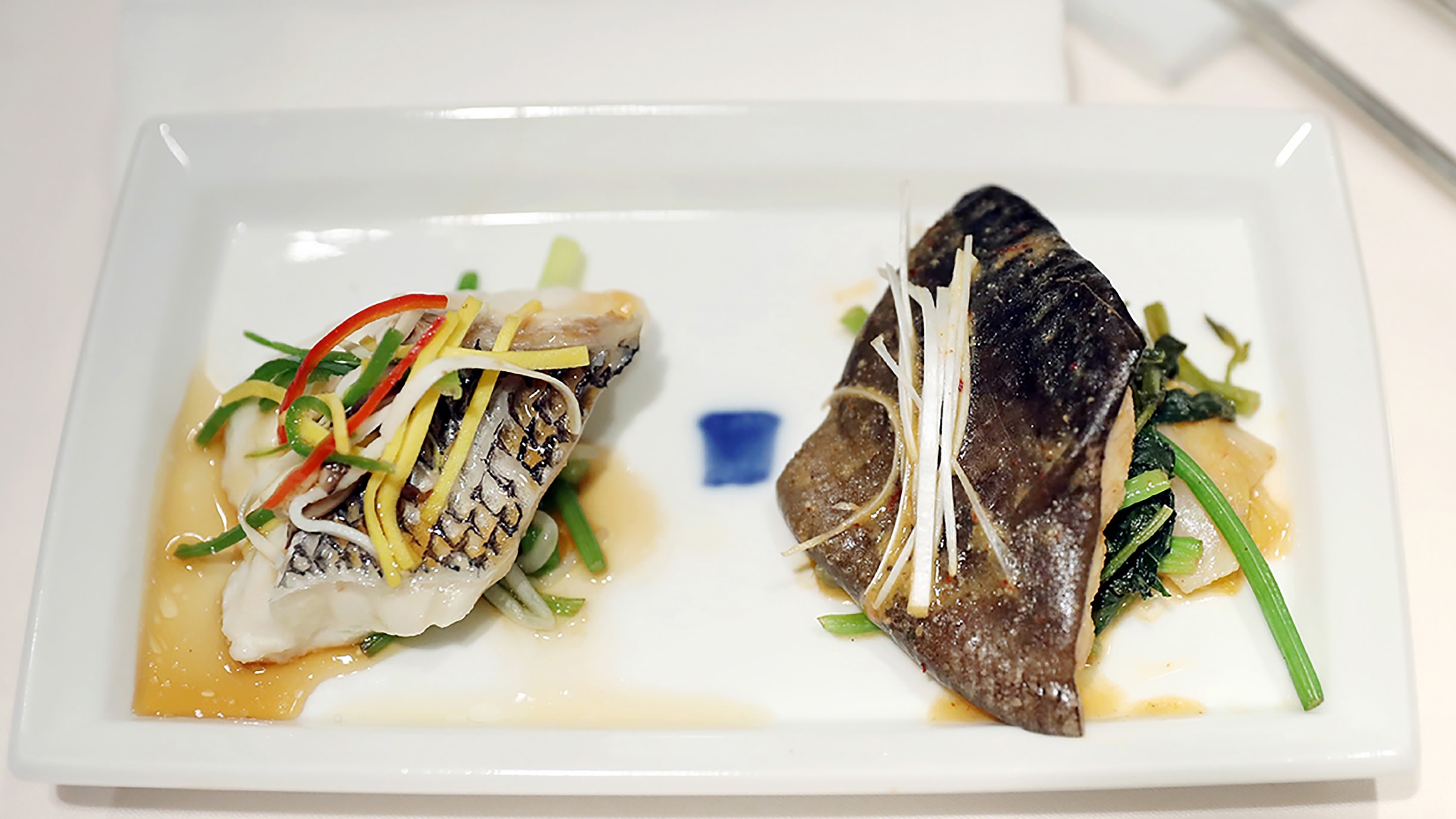 Steamed red snapper and catfish, both of which are found and often eaten across both Koreas, symbolizes the similarities between the two countries. /VCG Photo