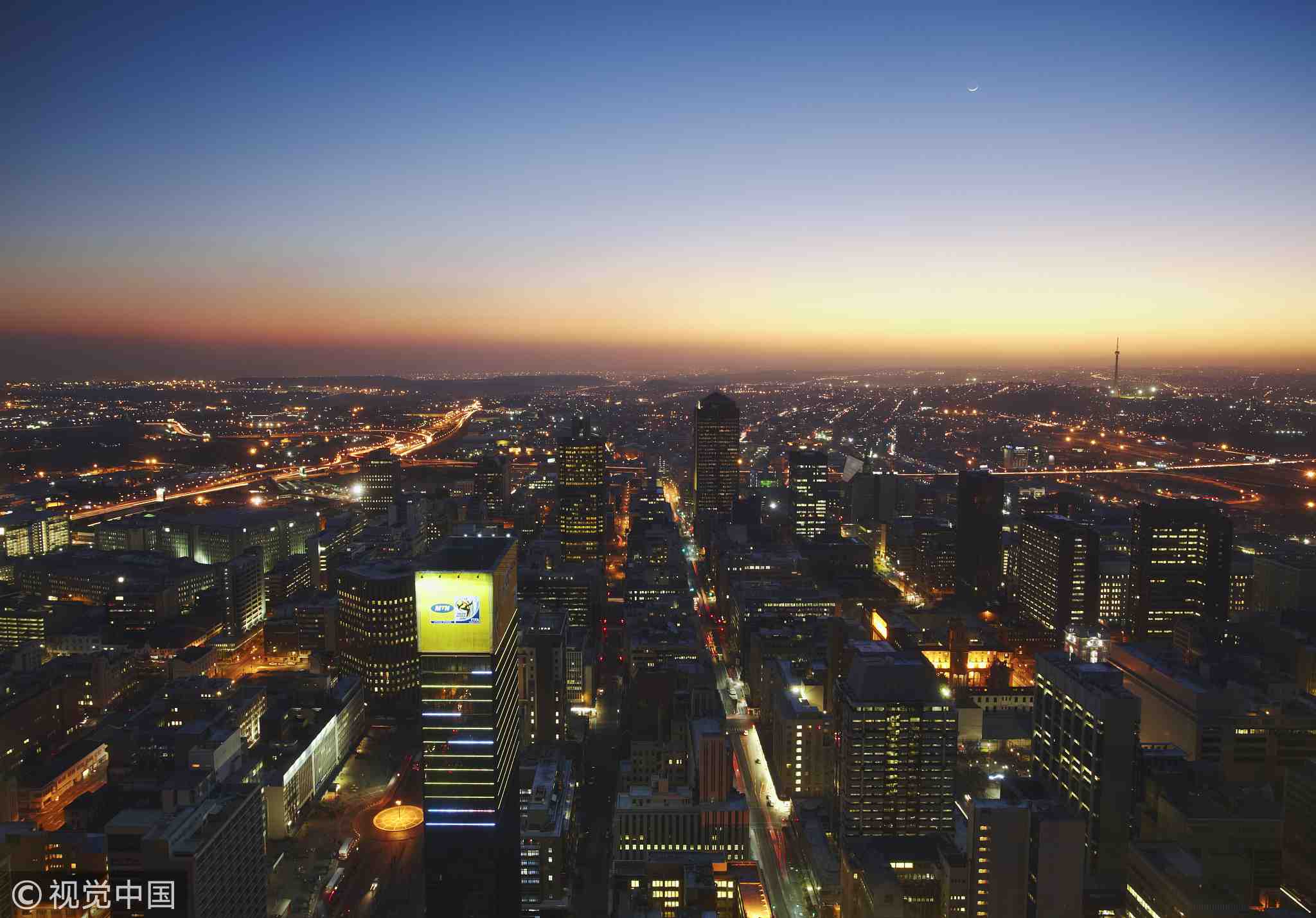 View of downtown Johannesburg at sunset, South Africa./VCG Photo