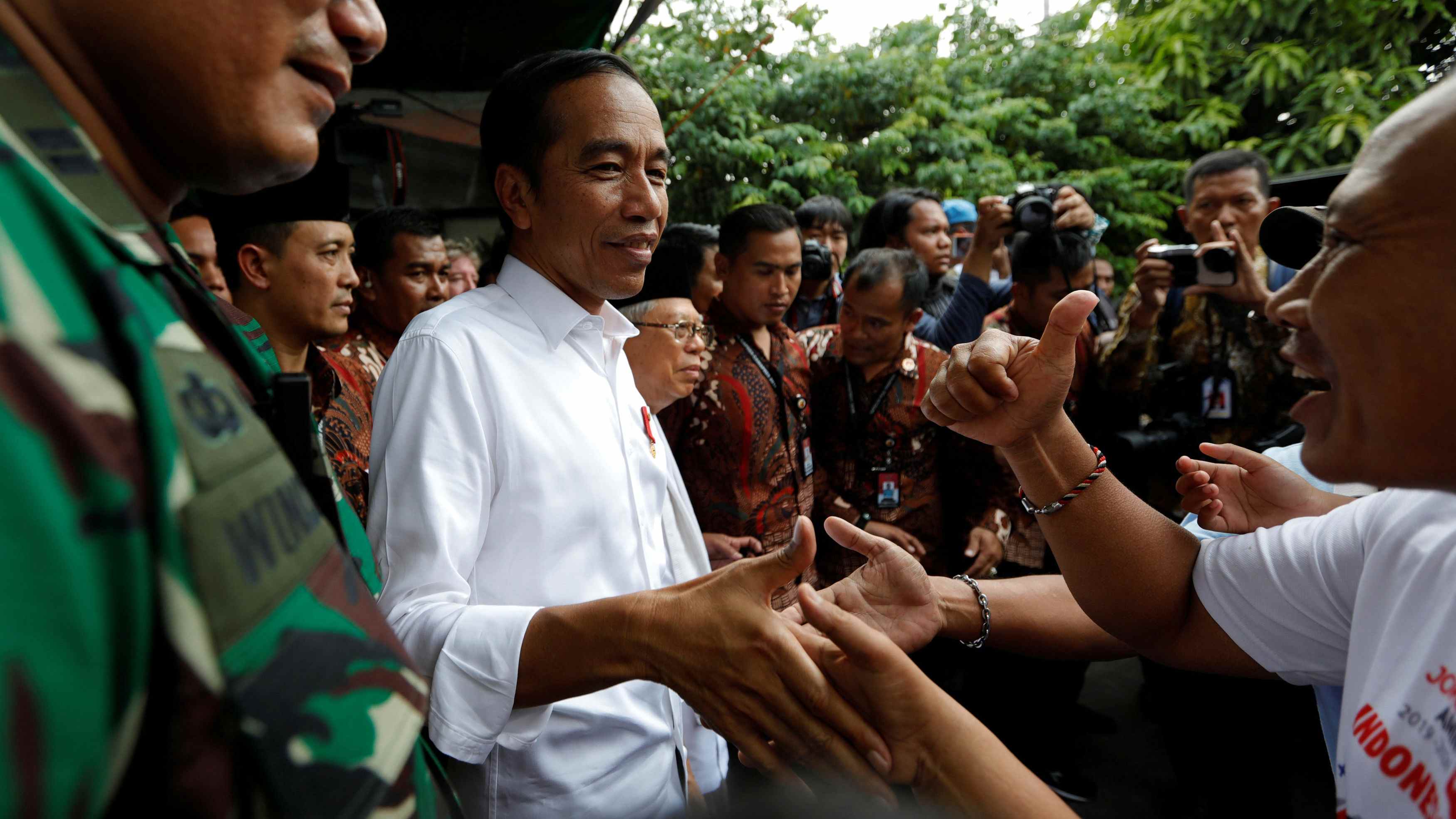 (Cover: Indonesian President Joko Widodo greets his supporters after making a public address following the announcement