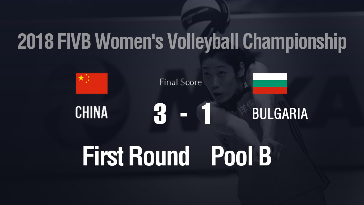 The Chinese women's national volleyball team beat Bulgaria 3-1 (22-25, 25-22, 25-14, and 25-17) at the 2018 FIVB World Championship in Sapporo, Japan, on Wednesday night.