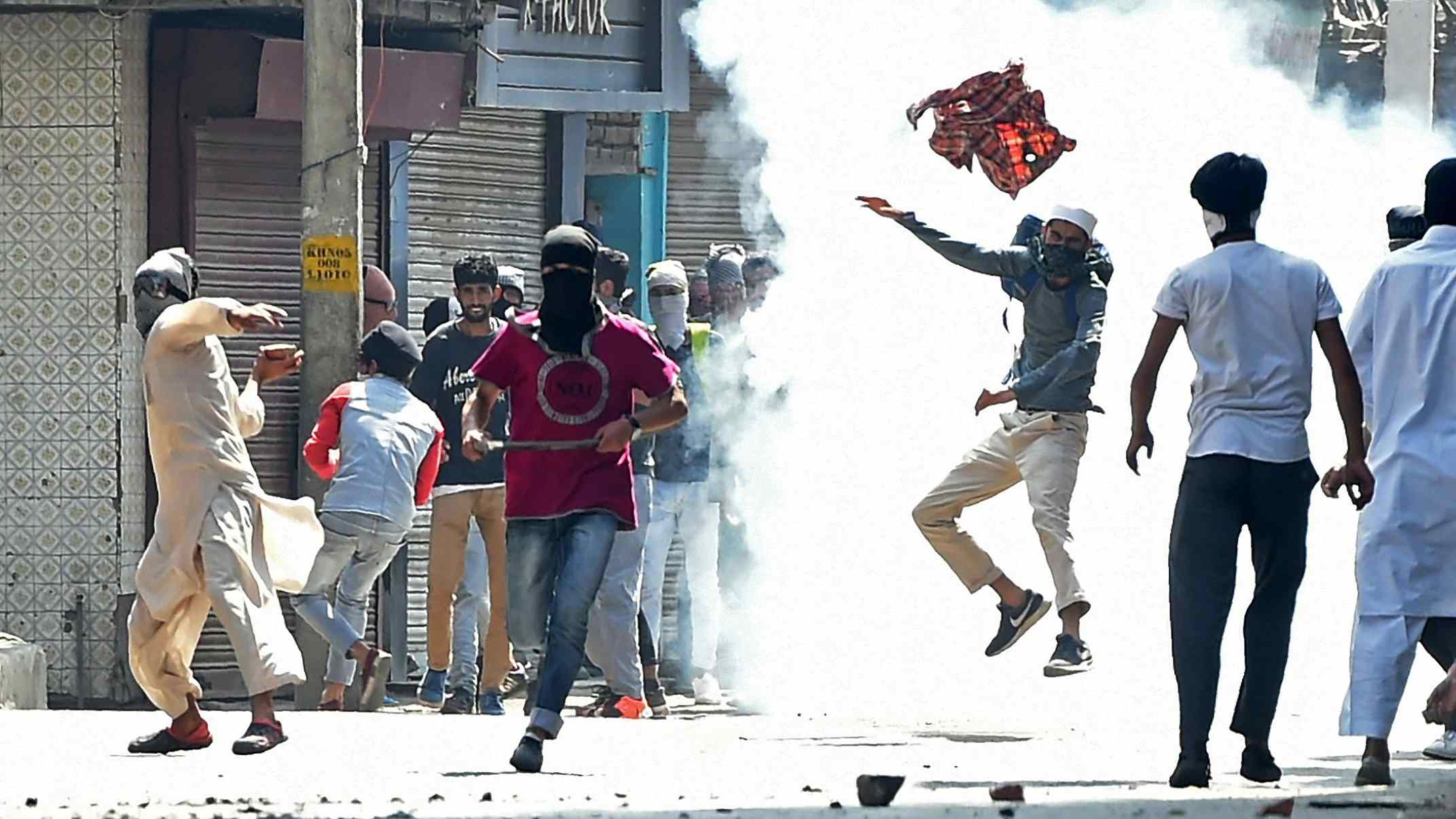 Kashmiri protestors and government forces clash in downtown Srinagar on June 8, 2018. /VCG Photo