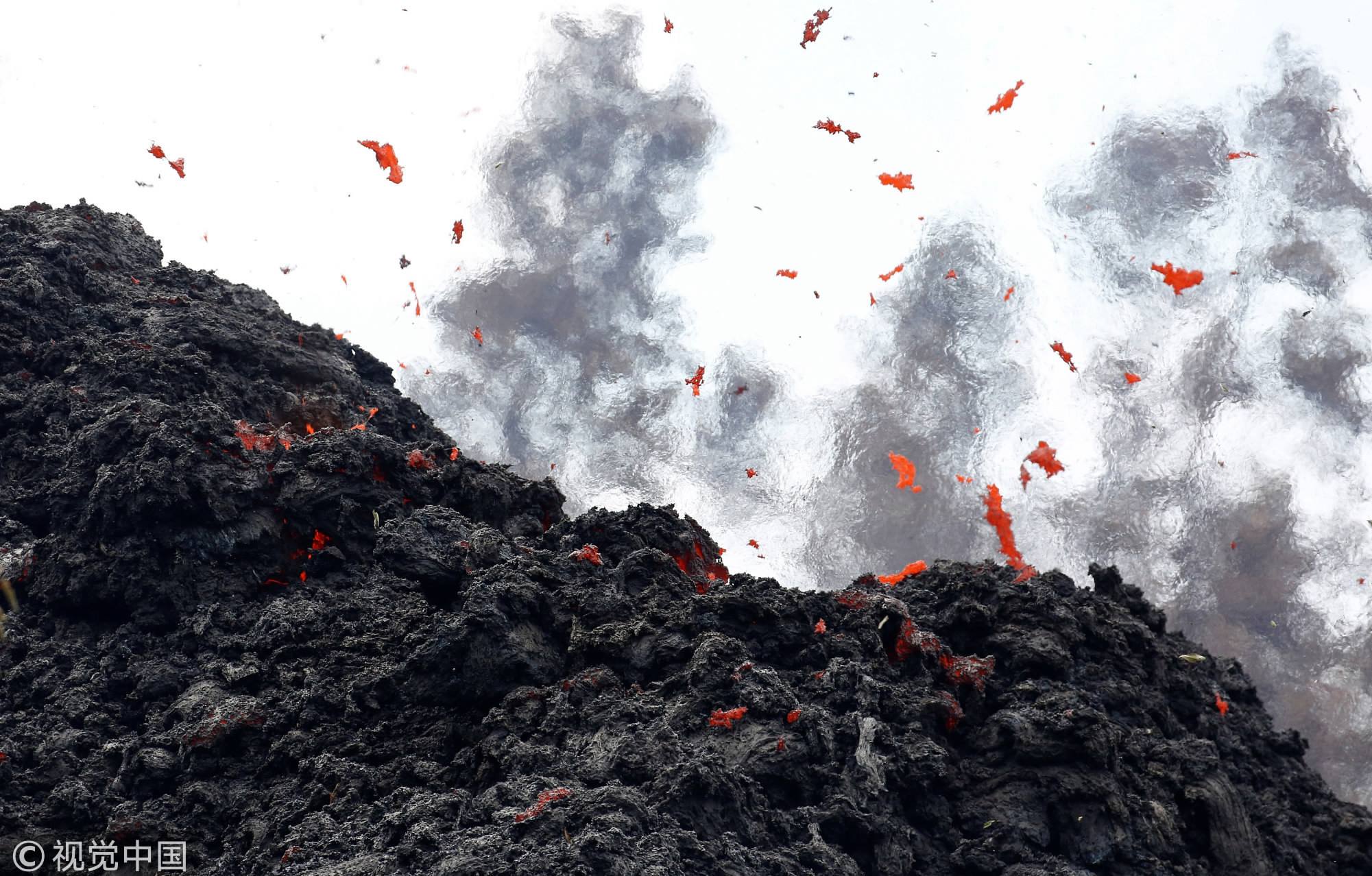 “Lava from this latest outbreak is actively spattering,” the US Geological Survey’s Hawaiian Volcano Observatory said. “The volcanic vents, or fissures, have released slow-moving lava and toxic gas into island communities, gobbling up dozens of homes and vehicles.” /VCG Photo