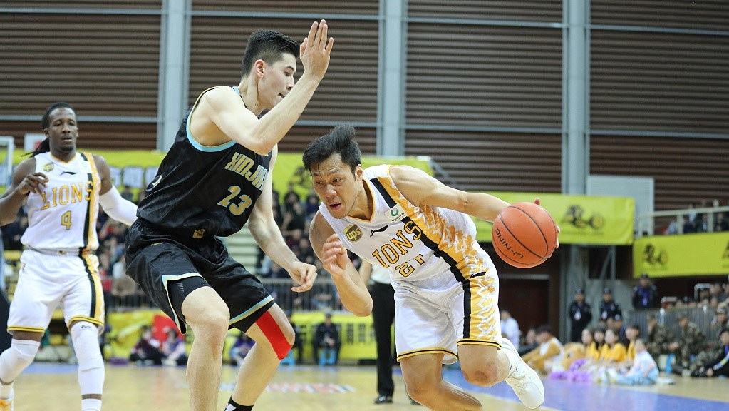 Lin Chih-chieh #27 of the Zhejiang Guangsha Lions drives toward the basket against the Xinjiang Guanghui Flying Tigers at the Hangzhou Gymnasium, March 31. /VCG Photo