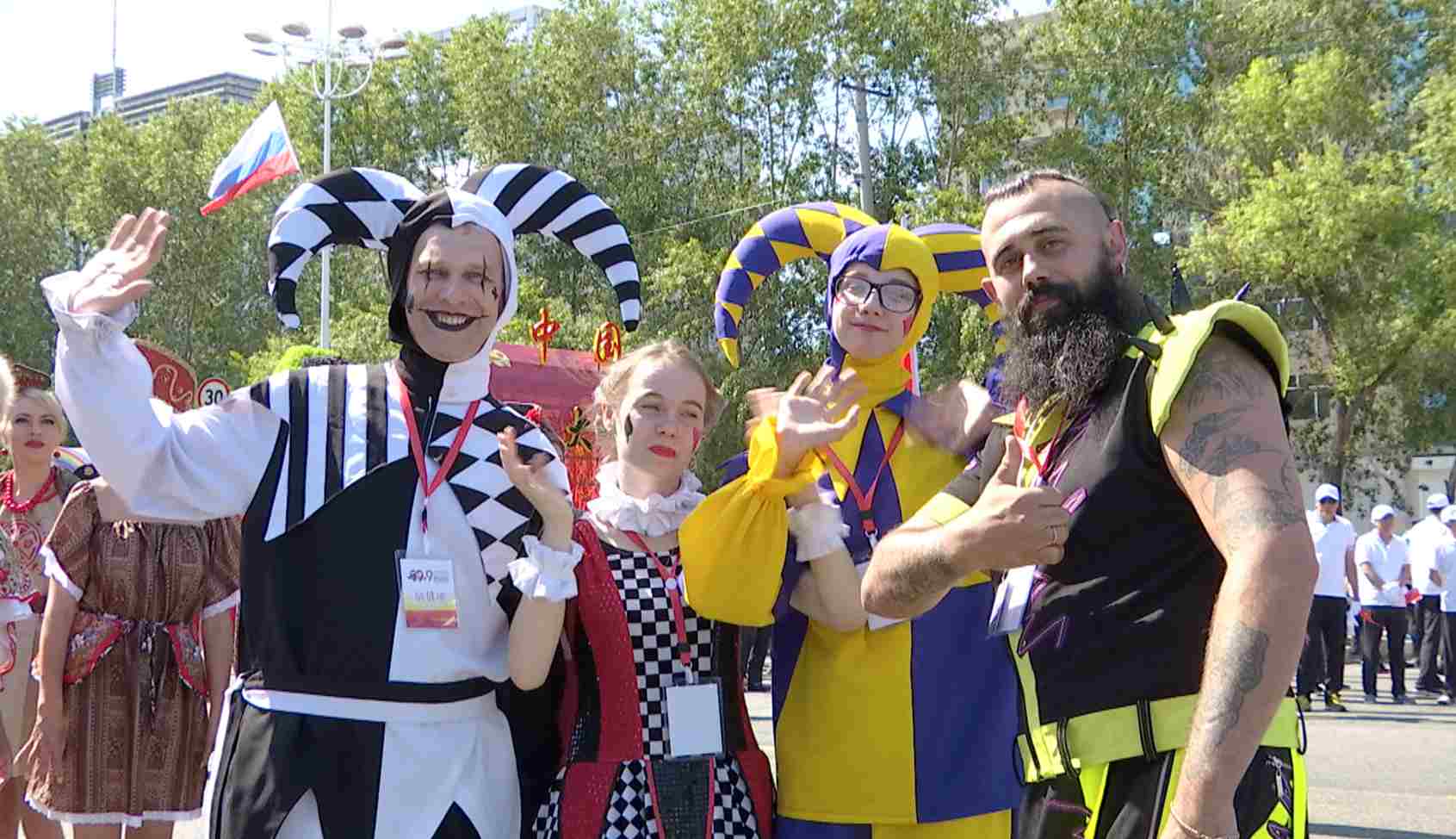 Russian performers participating in a float parade during the fair /CGTN Photo