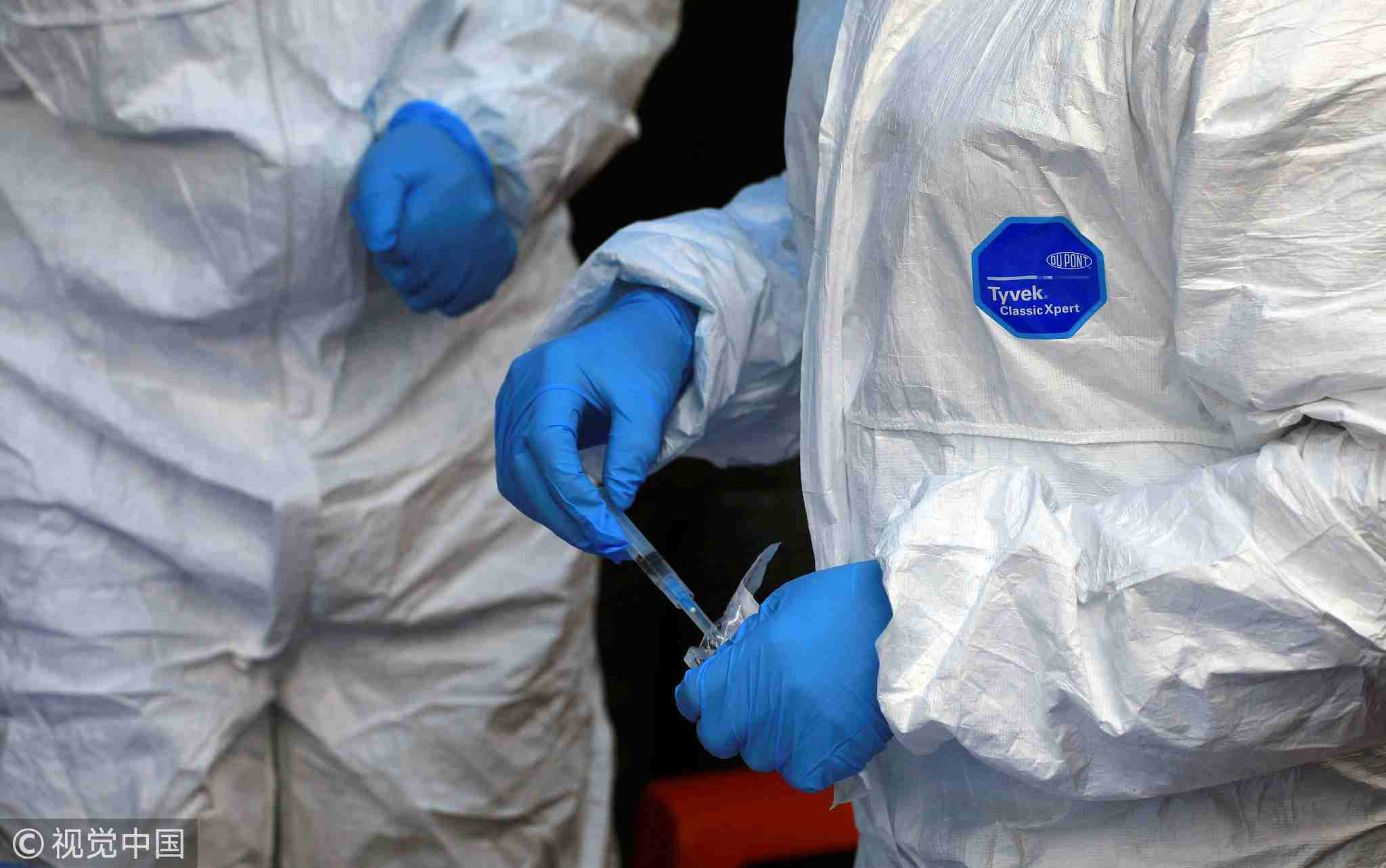 Congolese health workers wear protective suits as they prepare equipment before the launch of a vaccination campaign against the deadly Ebola virus. /VCG Photo