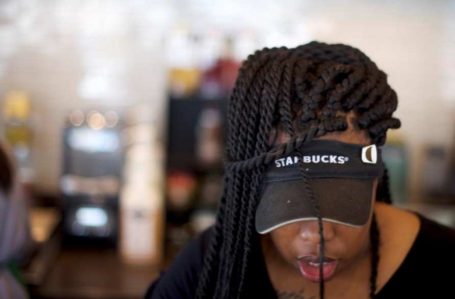 A Starbucks barista makes a hot beverage in a South Philadelphia store, before more than 8,000 branches nationwide will close this afternoon for anti-bias training, in Philadelphia. /Reuters Photo