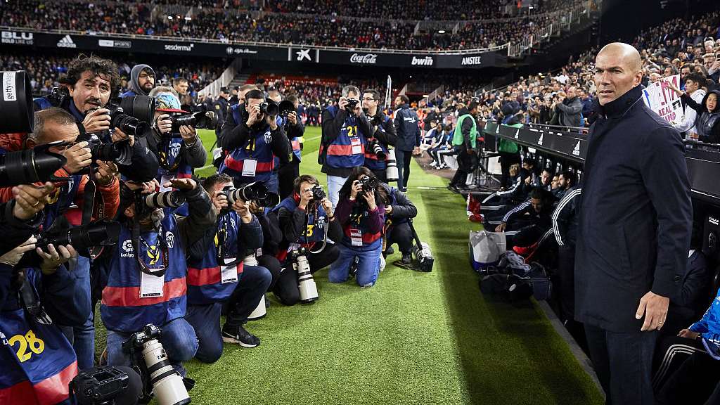 Zinedine Zidane, head coach of Real Madrid, prior to the La Liga match against Valencia CF at Estadio Mestalla in Valencia, Spain, April 3, 2019. /VCG Photo