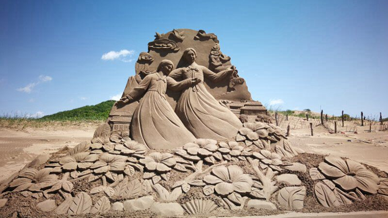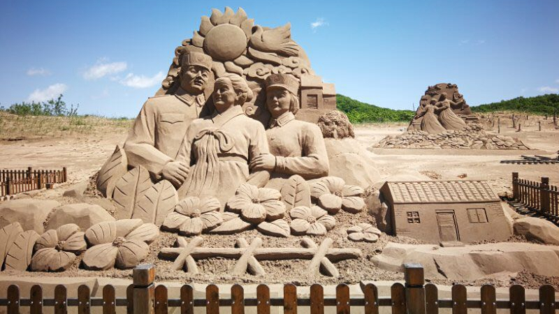 Located in Hunchun City, which lies near the juncture of the borders of China, the DPRK and Russia, these sand sculptures depict local and ethnic characteristics in an attempt to realistically demonstrate the unique cultural fusion of the three countries.