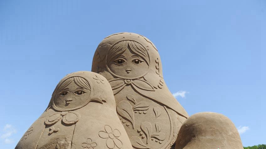 Figures of Matryoshka Dolls in the park. /China Daily Photo