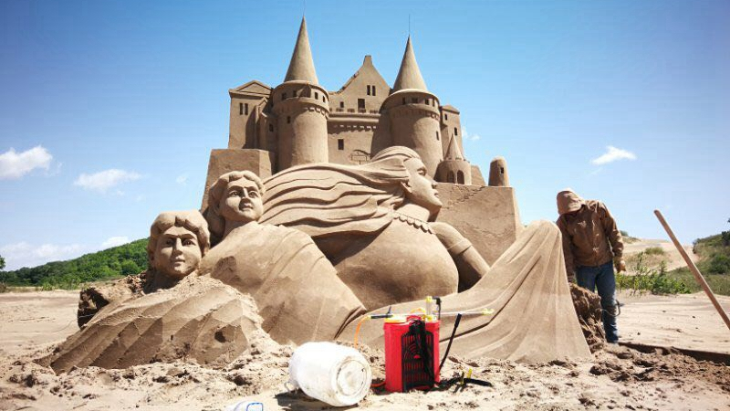 One of the 12 sand sculptures in the park. /China Daily Photo