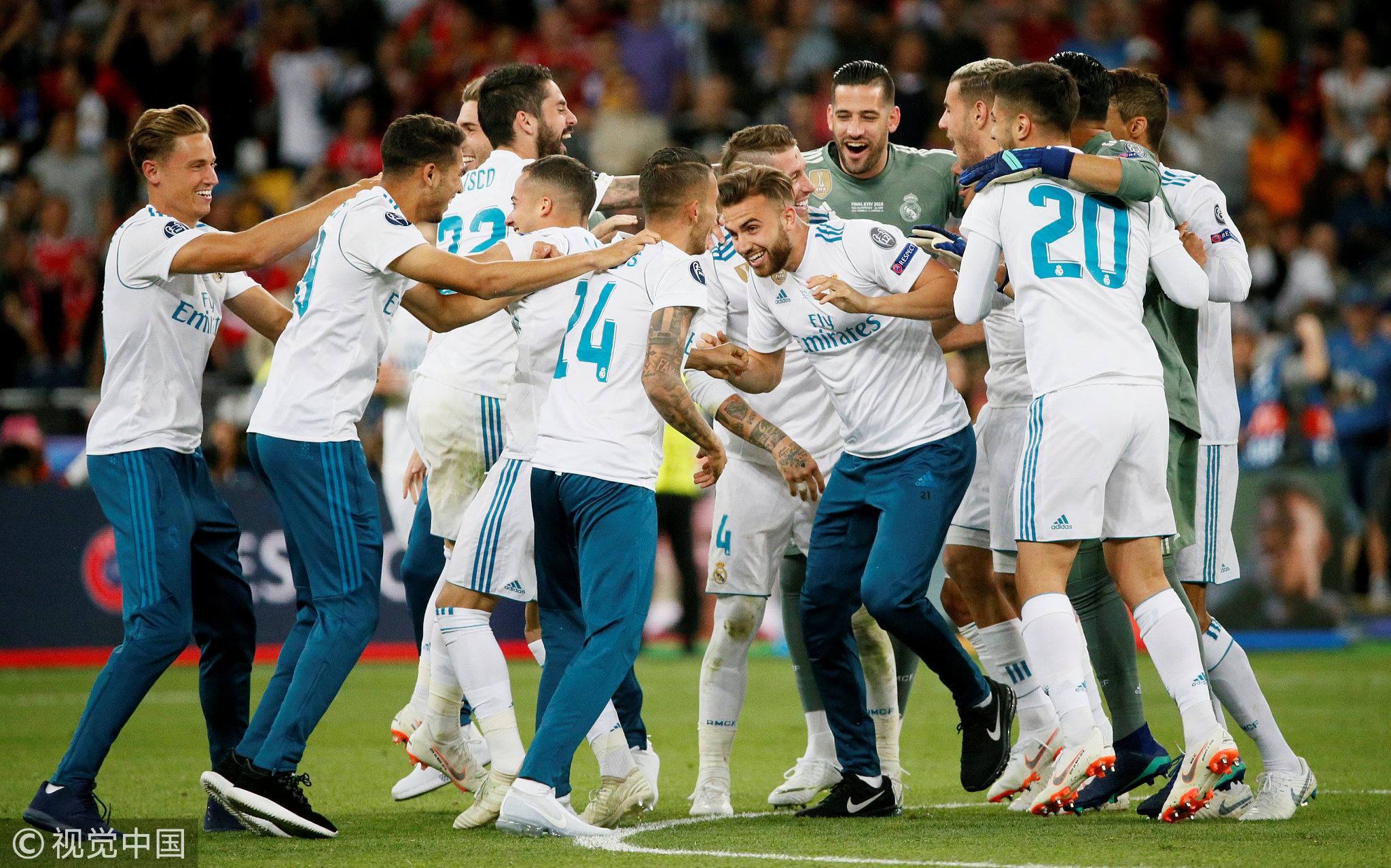 Real Madrid players celebrate after winning the Champions League. /VCG Photo