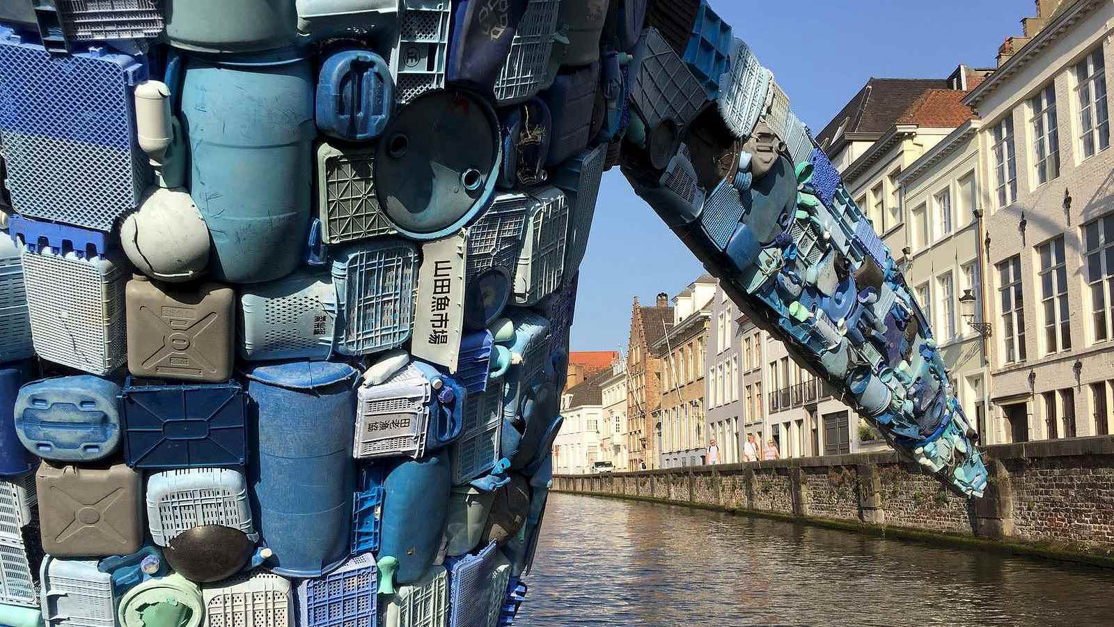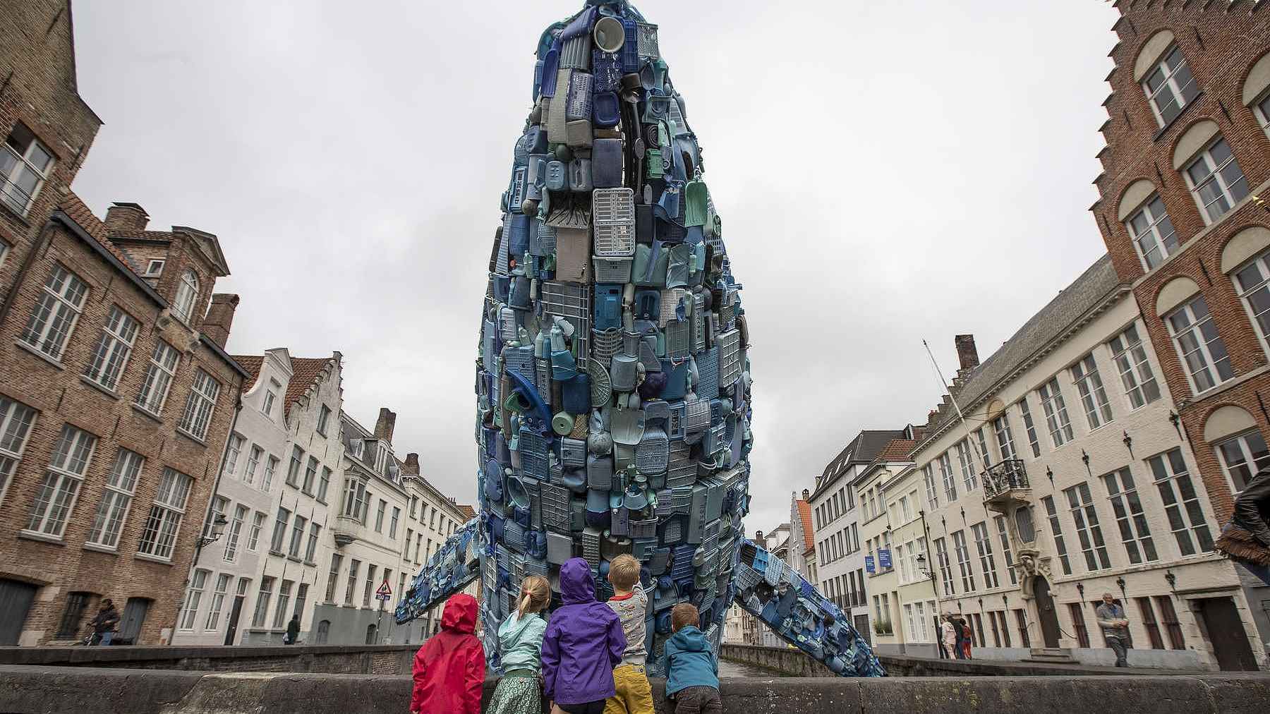 The Bruges Whale, also called the Skyscraper, was made to highlight the marine pollution problem and remind us of the 150,000,000 tons of plastic waste that has been dumped and still remains in oceans. /VCG Photo.