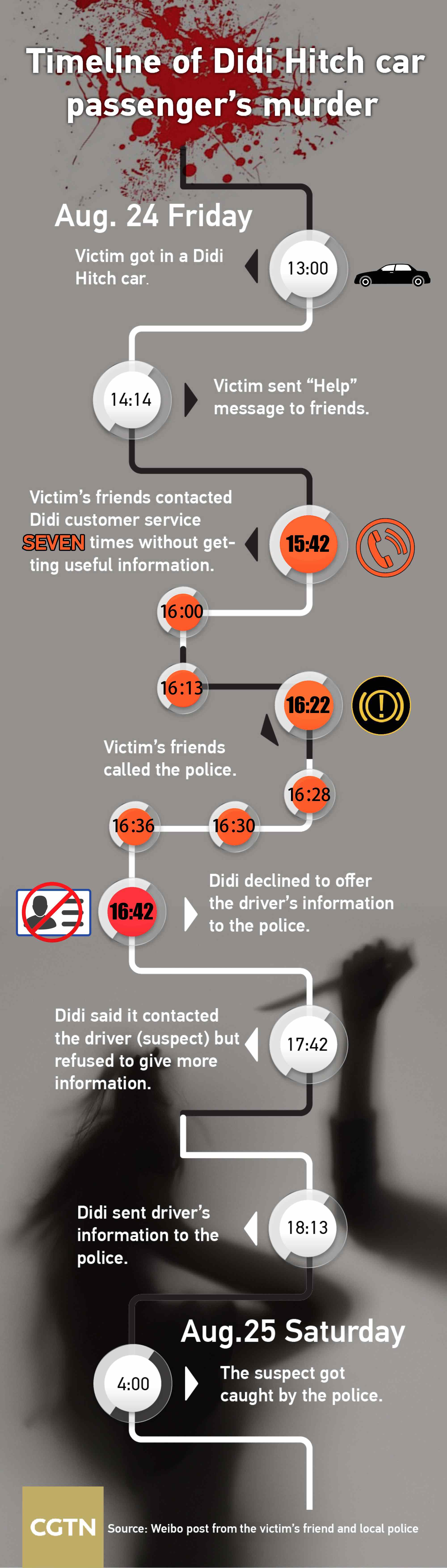 Right after the victim sent a "help" message, her family and friends immediately contacted Didi customer service and reported to the local police. However, Didi did not offer information about the driver to the police until several hours later, according to media reports.