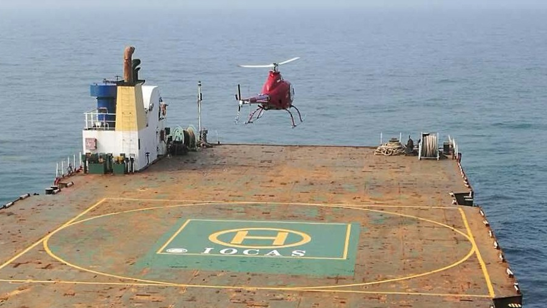 China's domestically made large unmanned helicopter, the Xiangying-200, completed its test flight and China's first autonomous takeoff and landing on a ship deck in northeast China's Shenyang City on July 27, 2018.