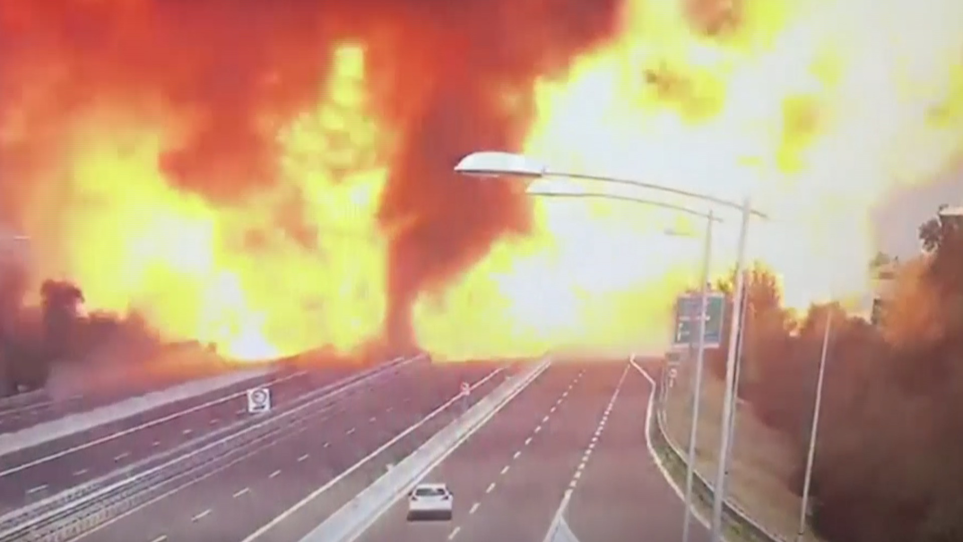 A tanker truck carrying flammable material exploded on Monday on a highway near the northern Italian city of Bologna, killing at least two people and injuring up to 70 as a section of the thoroughfare collapsed, police said. CCTV footage provided by Italian police appears to show the tanker truck colliding with a line of stationary vehicles stuck in traffic. The CCTV footage also showed a second, larger explosion resulting from the same incident.