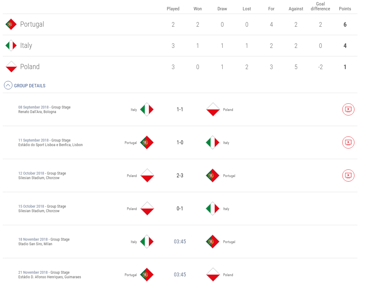 The ranking and results of Group 3. /Screenshot from UEFA website