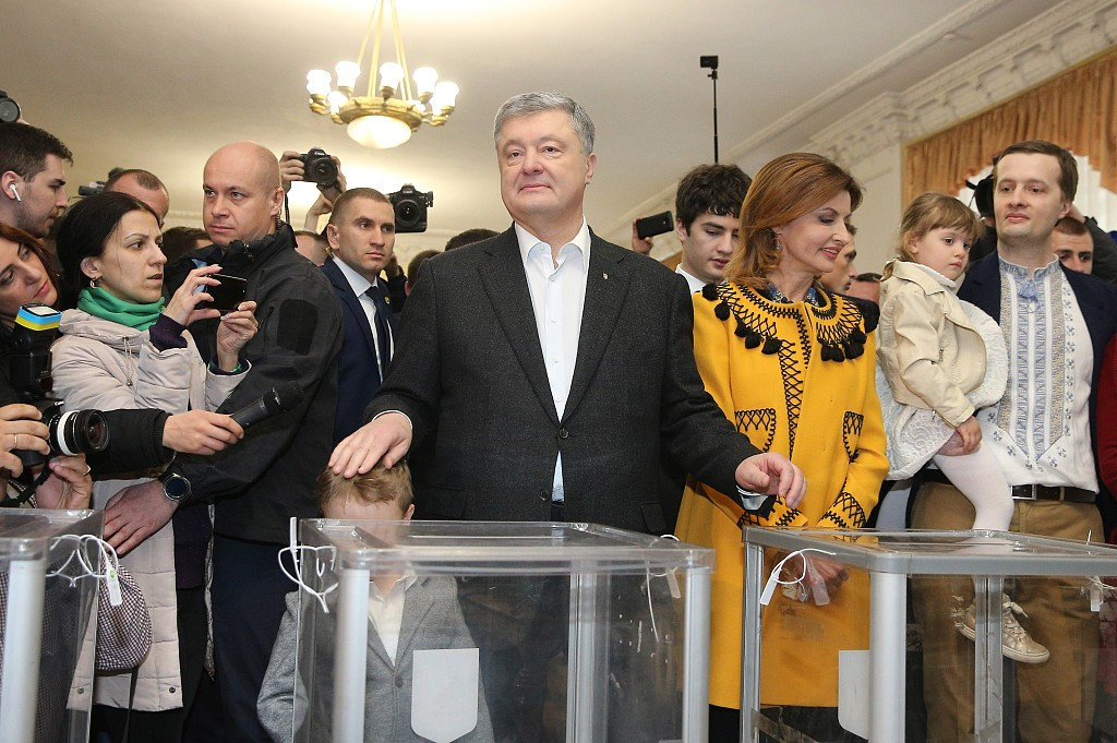 Petro Poroshenko casts his vote at a polling station during the second round of Ukraine's presidential election in Kiev, Ukraine, April 21, 2019. /VCG Photo