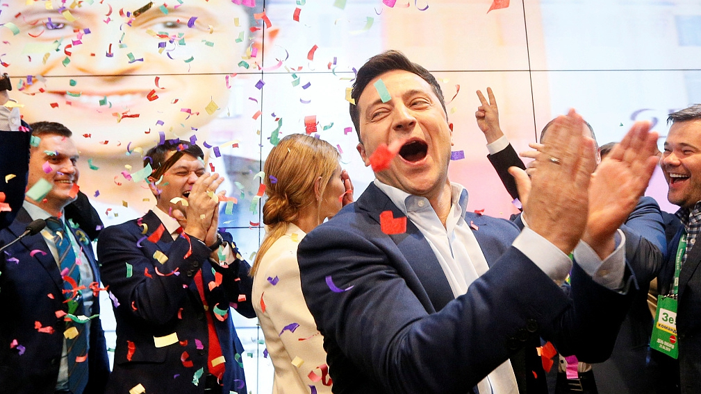 (Cover: Ukrainian President-elect Volodymyr Zelensky reacts following the announcement of the first exit poll in a presidential election at his campaign headquarters in Kiev, Ukraine, April 21, 2019. /VCG Photo)