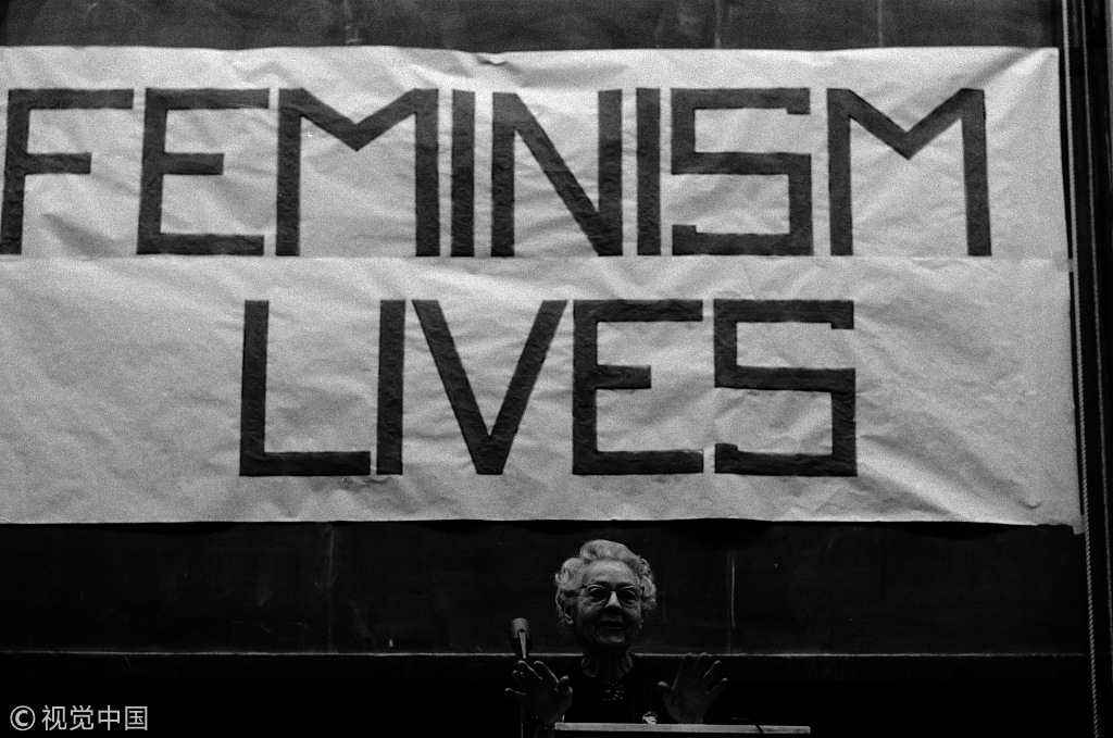 Pioneer feminist Florence Luscomb speaks at Radcliffe College, Cambridge, Massachusetts, 1971. /VCG Photo