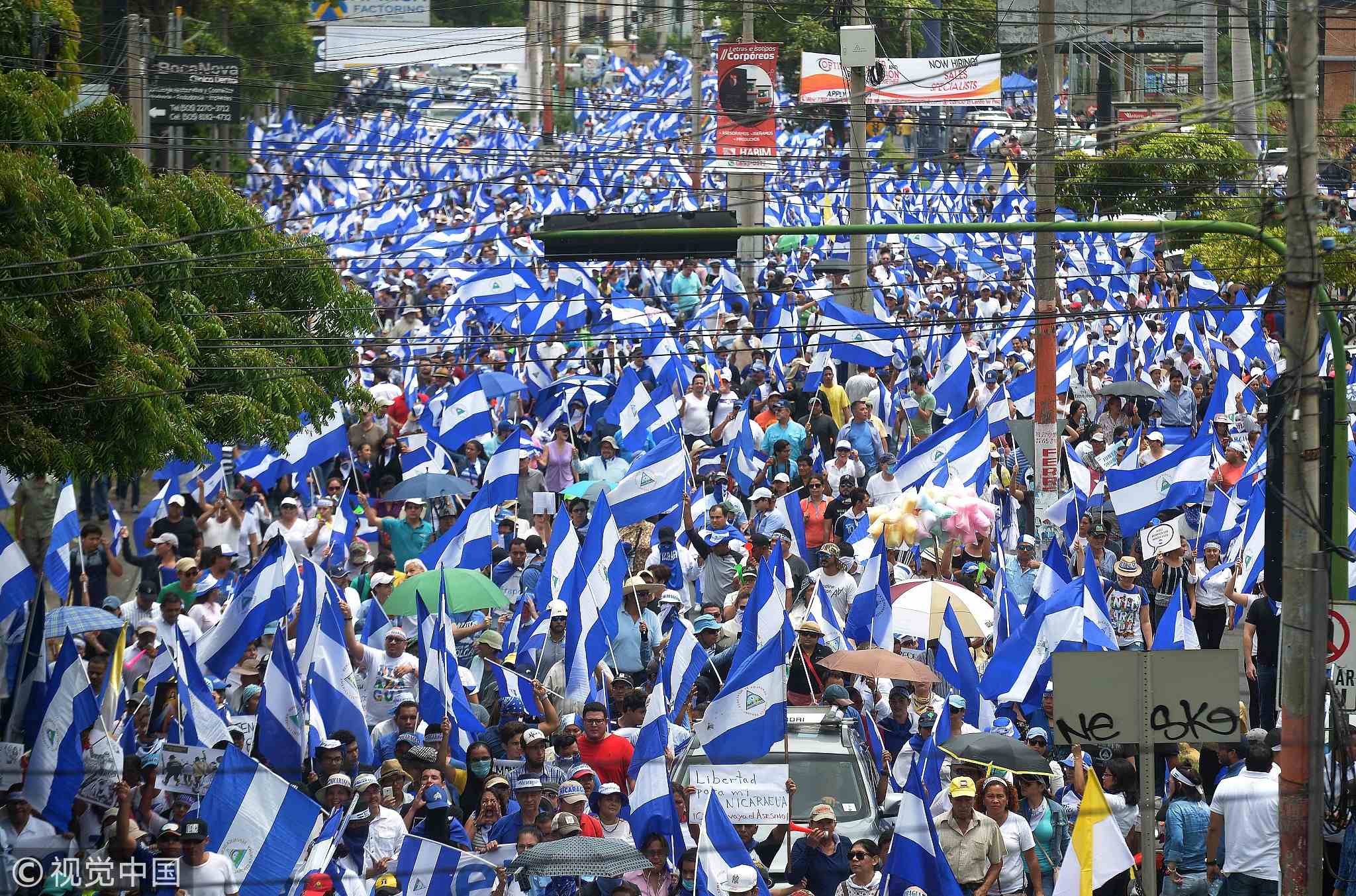 Nicaraguan opposition demonstrators take part in a nationwide march in Managua, July 12, 2018. /VCG Photo