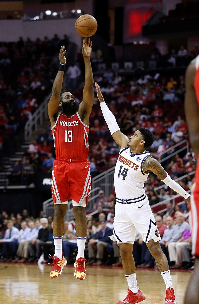 James Harden #13 of the Rockets shoots in the game against the Nuggets, March 28, 2019. /VCG Photo