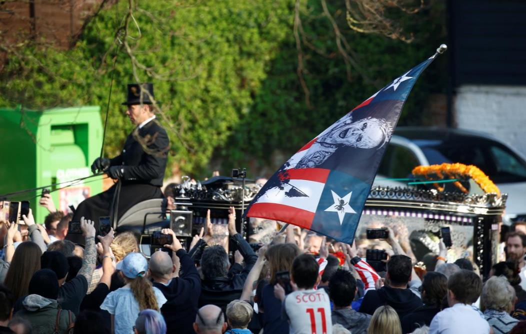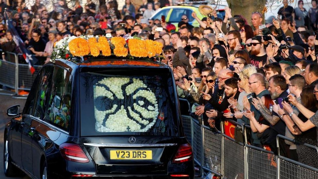 Fans gather for the funeral of Keith Flint in Braintree, Essex, Britain, March 29, 2019. /Reuters Photo