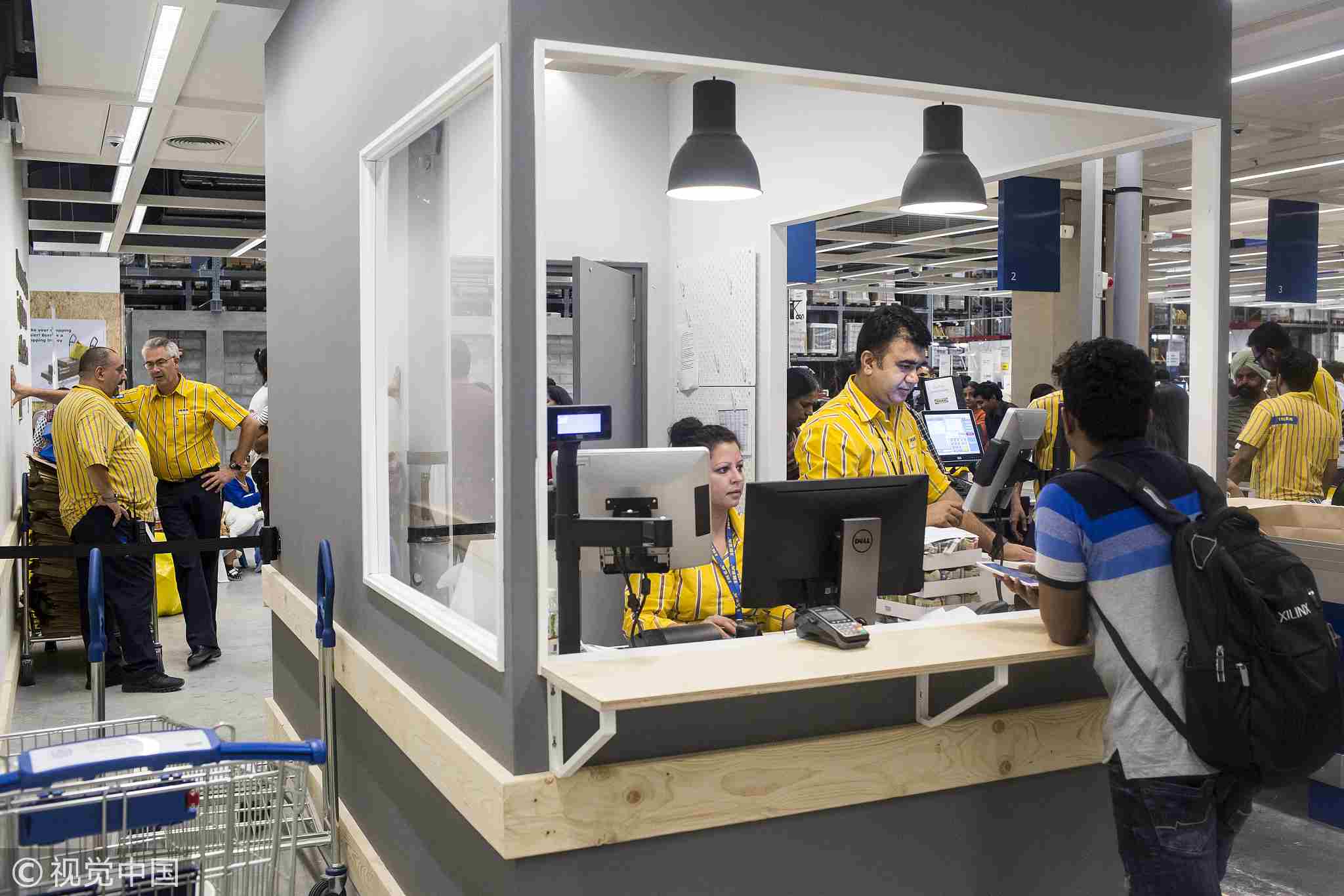 Employees assist a customer at a service counter inside the Ikea store. / VCG Photo.