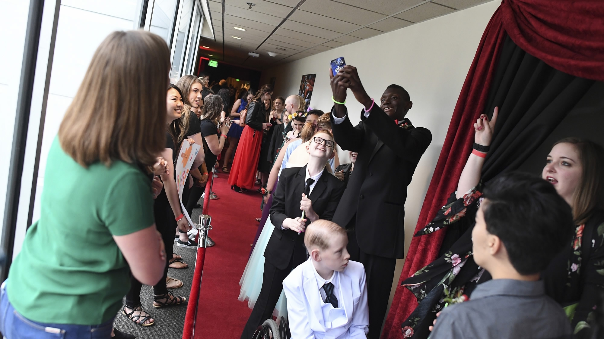 Malachi Mason, 15, who has kidney failure and is on the transplant list at the hospital, was taking a selfie on the red carpet before the prom. /VCG Photo