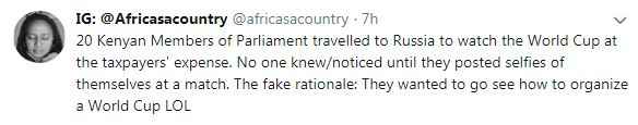 A trip by Kenyan deputies to the World Cup in Russia has provoked outrage at home, with people slamming the cost of the journey, paid for by taxpayers, while the government has justified it as official business.