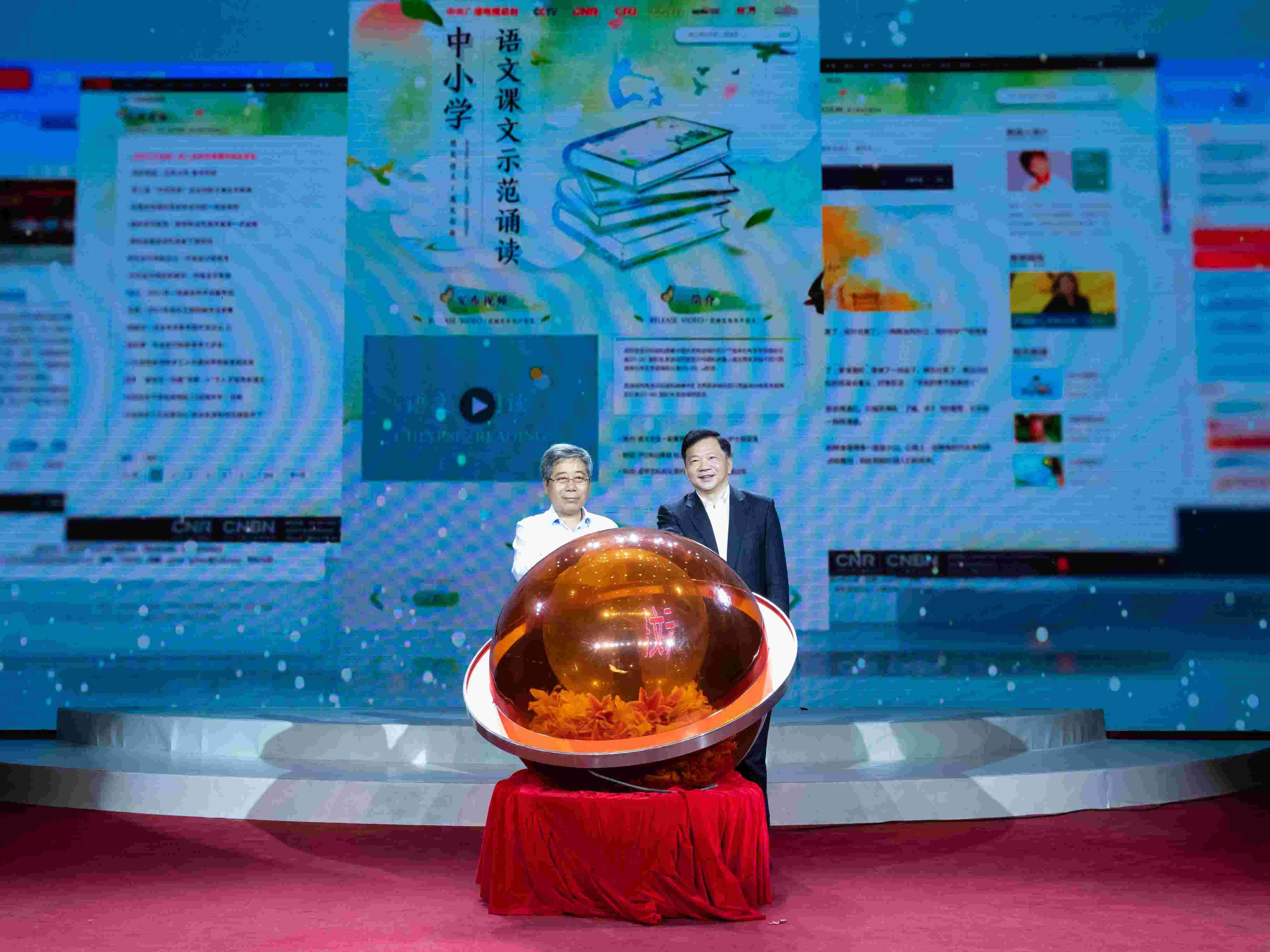 Shen Haixiong, Vice Minister of Publicity Department of the CPC Central Committee and the head of China Media Group, and Chen Baosheng, Minister of Education, have jointly launched the first 100 audio texts for a reading library for primary and middle schools to popularize standard Chinese.