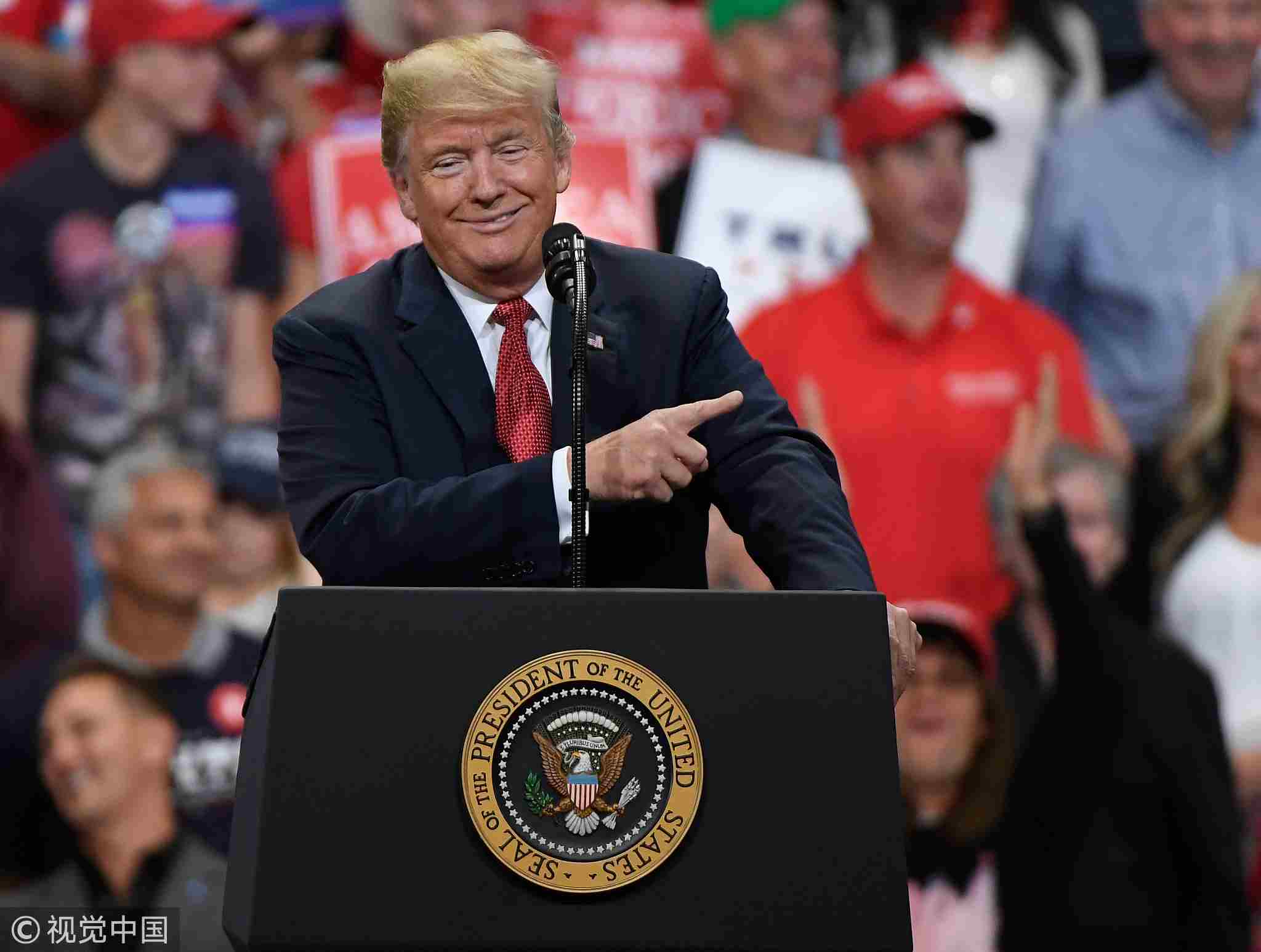 US President Donald Trump speaks at a campaign rally at Mayo Civic Center in Rochester, Minnesota, October 4, 2018. / VCG Photo
