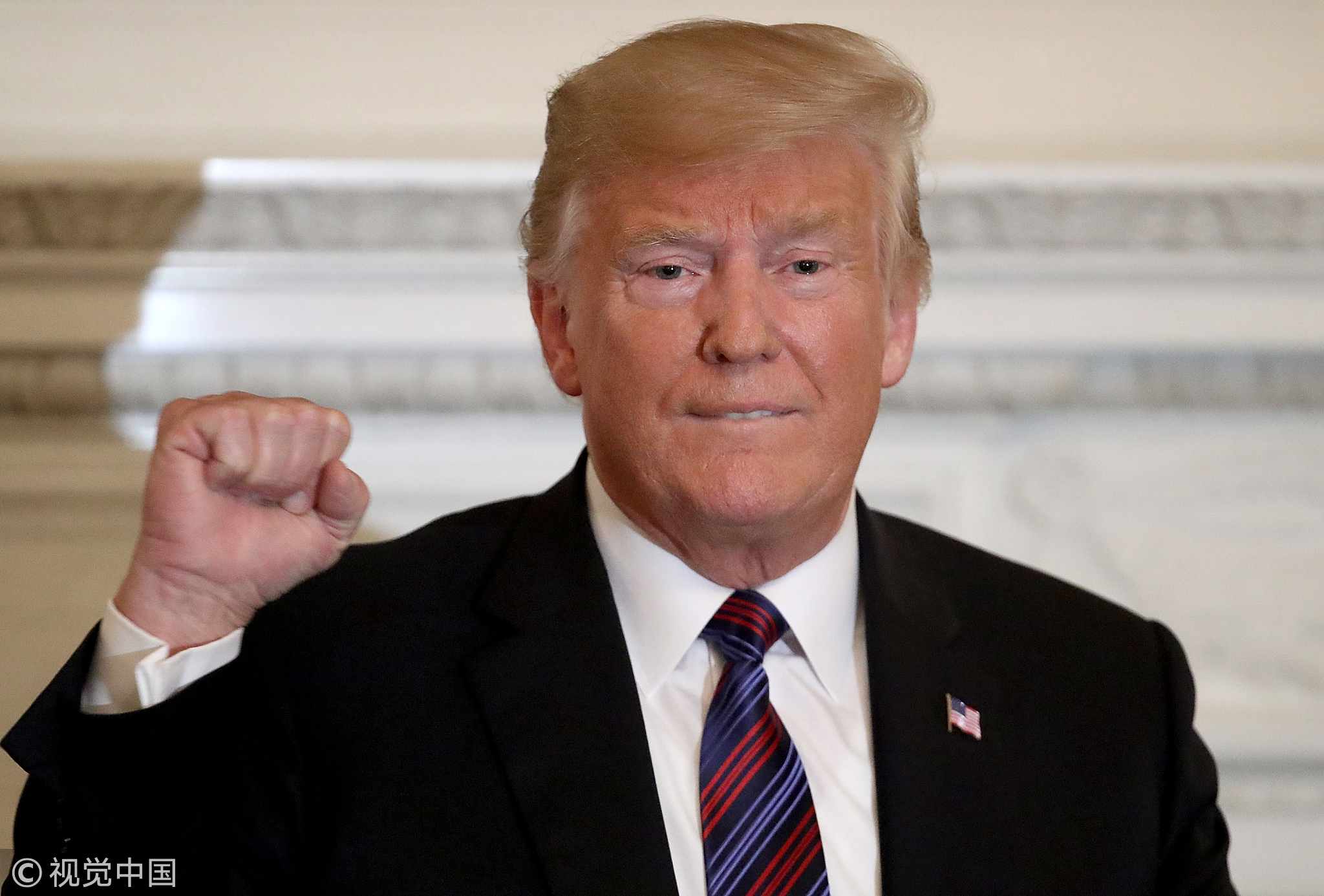 President Donald Trump gestures while delivering remarks to dinner guests celebrating evangelical leadership at the White House August 27, 2018, in Washington, DC. /VCG Photo