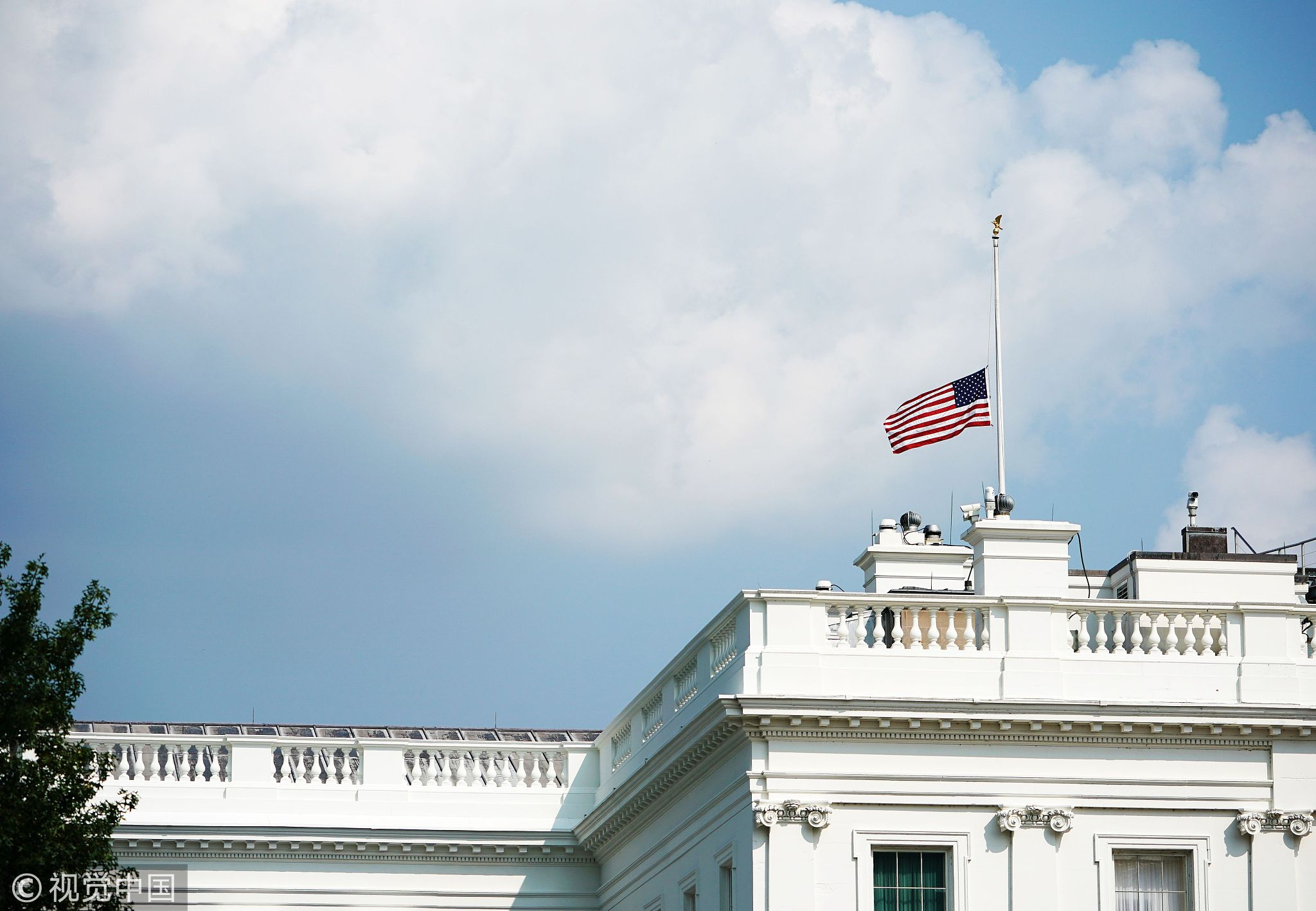 The flag above the White House flies at half-staff in Washington, DC, on August 27, 2018. /VCG Photo