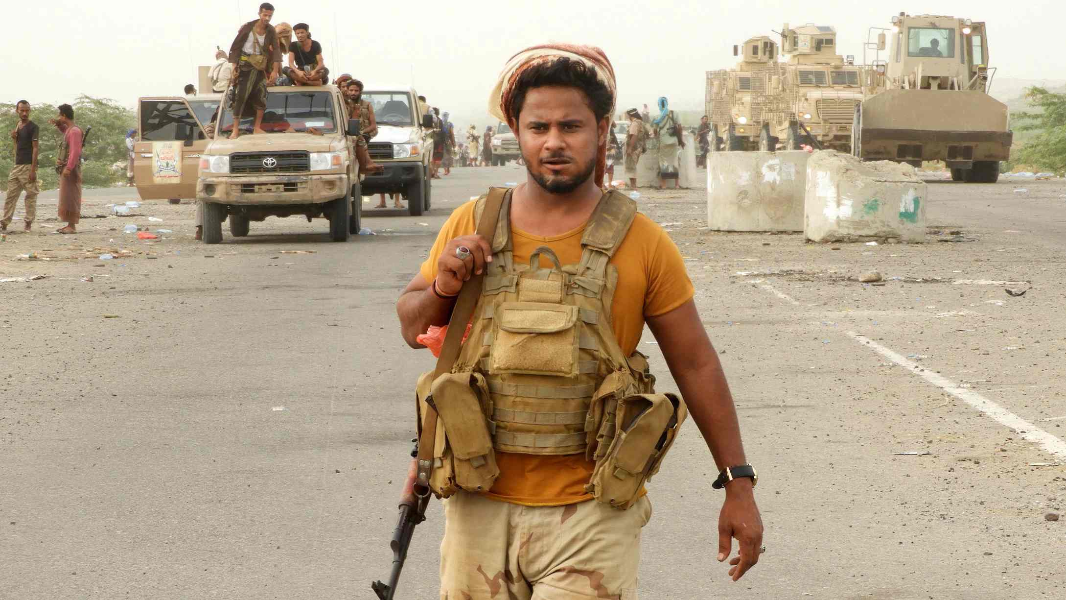 (Cover Photo: Yemeni pro-government forces flash the victory gesture as they arrive in Al Durayhimi district, about nine kilometers south of Hodeidah International Airport, June 13, 2018. /VCG Photo)
