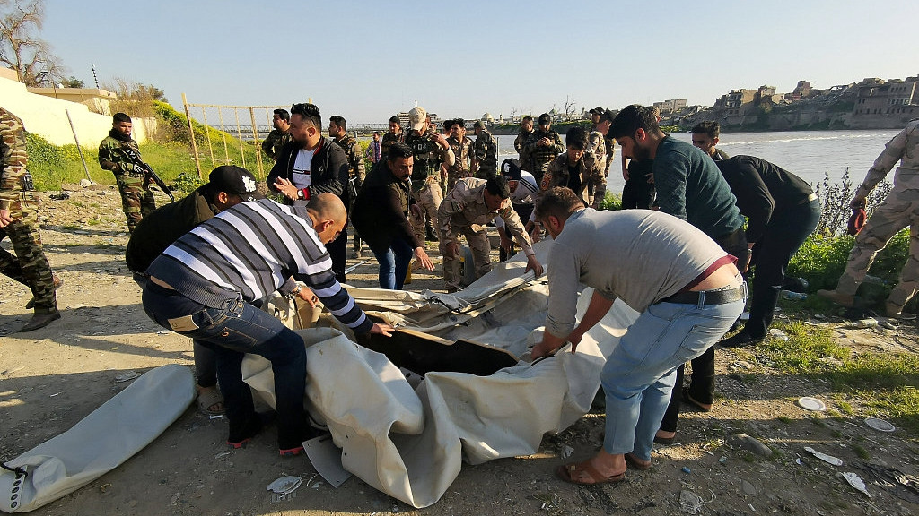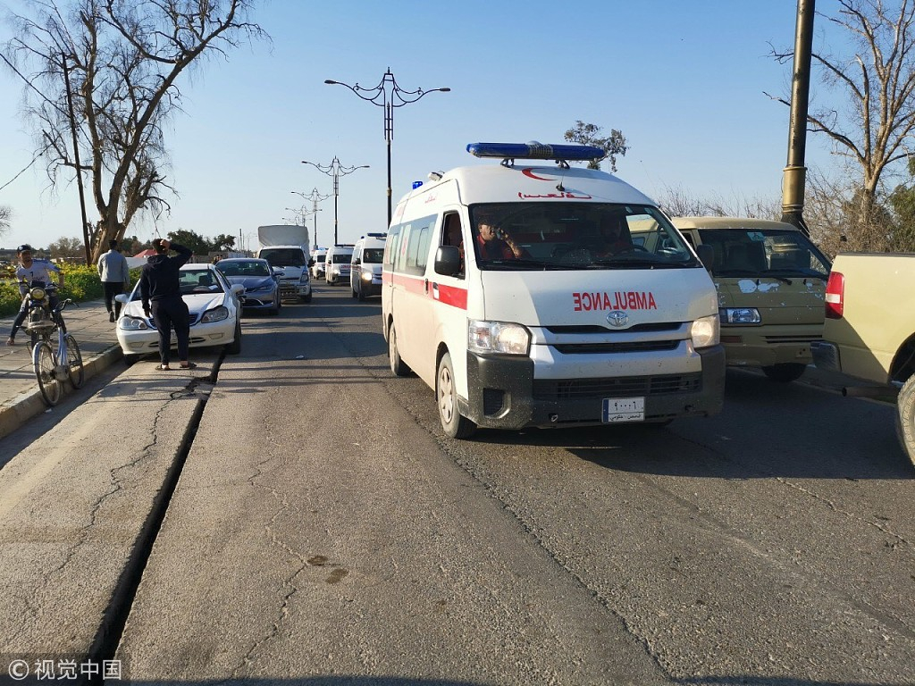 Ambulances are being sent to the site after a ferryboat sank in Iraq's Tigris River, Mosul, March 21, 2019. / VCG Photo