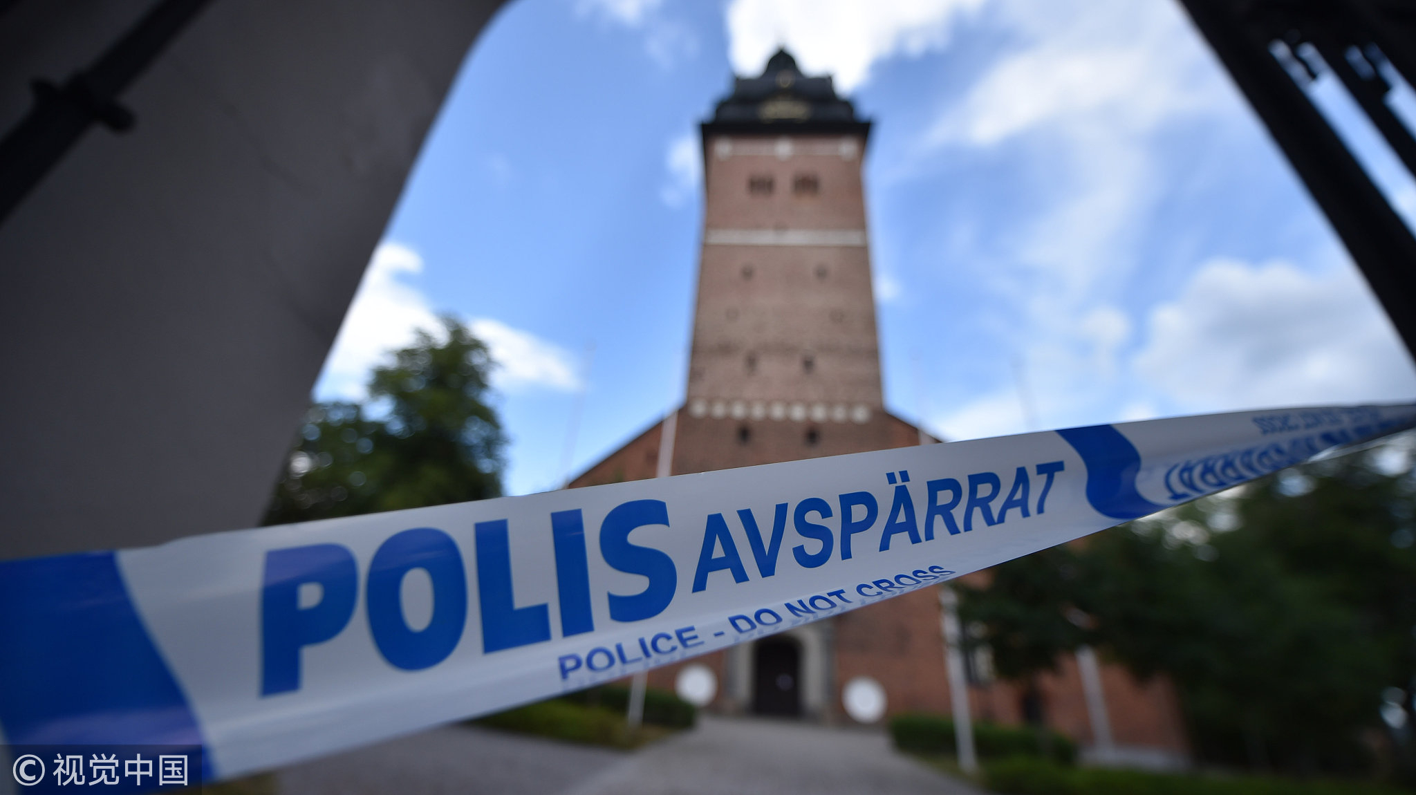 July 31, 2018: A cordoned zone after Sweden’s royal jewels were stolen in Strangnas cathedral, west of Stockholm. /VCG Photo
