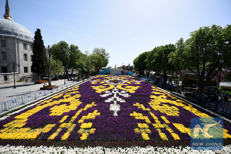 April 18, 2016: A Tulip carpet in Istanbul, Turkey. /Xinhua Photo