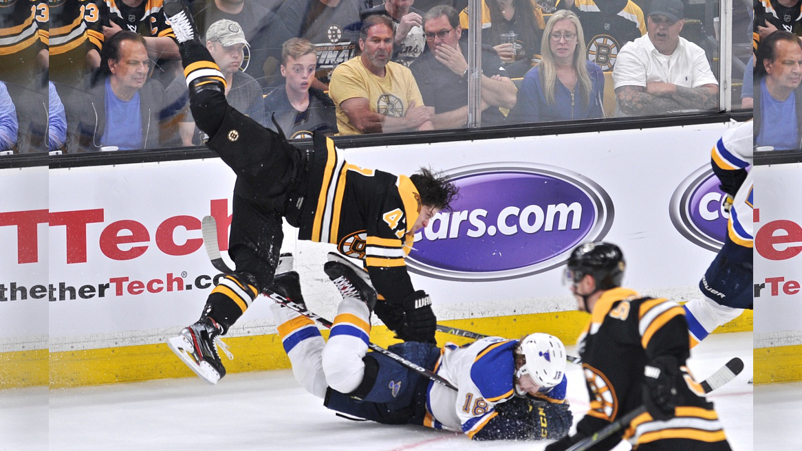 Sean Kuraly scored early in the third as the Boston Bruins rallied with four unanswered goals to beat the St Louis Blues 4-2 in the opening game of the Stanley Cup finals.