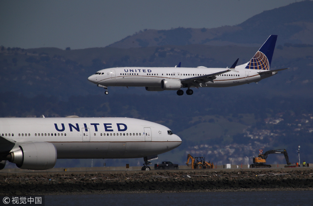 A United Airlines Boeing 737 Max 9 aircraft lands at San Francisco International Airport, Burlingame, California, March 13, 2019. /VCG Photo