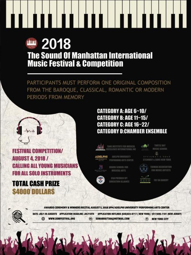 The Sound of Manhattan (SOM) International Music Festival & Competition, founded by Chinese-American concert pianist Diyi Tang, will hold its 3rd gala concert from July 29 to August 5, with the aim of inspiring young musicians to pursue a life in music.