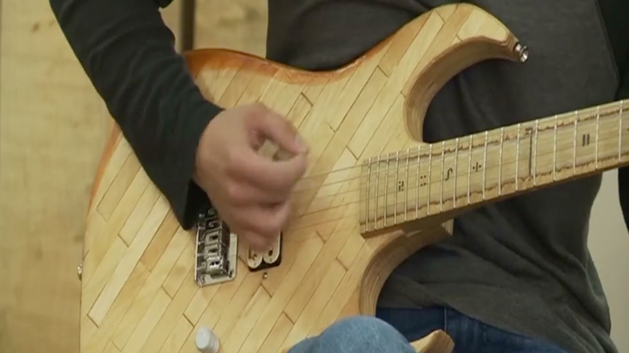 Amateur musician Maciej Walaszek made himself a unique guitar out of wooden tongue depressors that are used by doctors to examine patients' mouths and throats. It sounds just like a regular electric guitar.