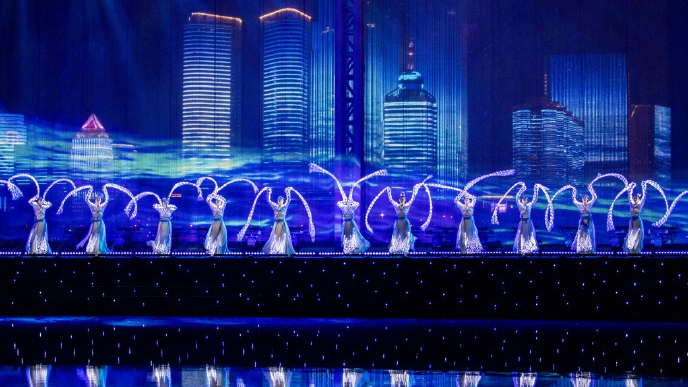 Chapter four, “Toward a Better Future”, featured laser shows and performances by the Beijing Urban Contemporary Dance Theater and Guangzhou Hengda Opera Dance Theater. /CCTV NEWS