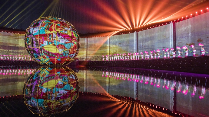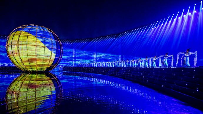 The 2018 Shanghai Cooperation Organization (SCO) Summit opened in the eastern Chinese city of Qingdao with a performance extravaganza featuring a light and fireworks display that illuminated the night sky above the coastal city. Chapter one, “A Moonlit Night”, blurred the lines between Qingdao’s skyline and the stage, showing the moon rising above the sea. /CCTV NEWS