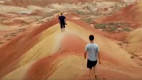 Two video clips showing several tourists walking on the UNESCO's cultural heritage Danxia landform have spread widely on music video platform Tik Tok. In the videos, the tourists even raised the dust from the landscape with their feet, saying, "it feels good to sneak into the park without a ticket."