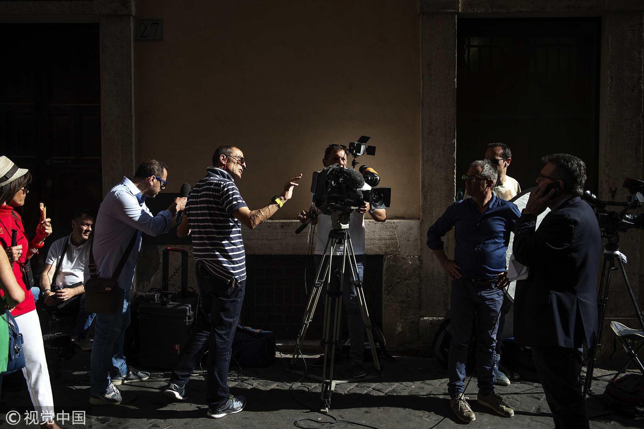Journalists work outside the Italian Parliament during a new day of meetings for the formation of the new government on May 31, 2018, in Rome, Italy. /VCG Photo