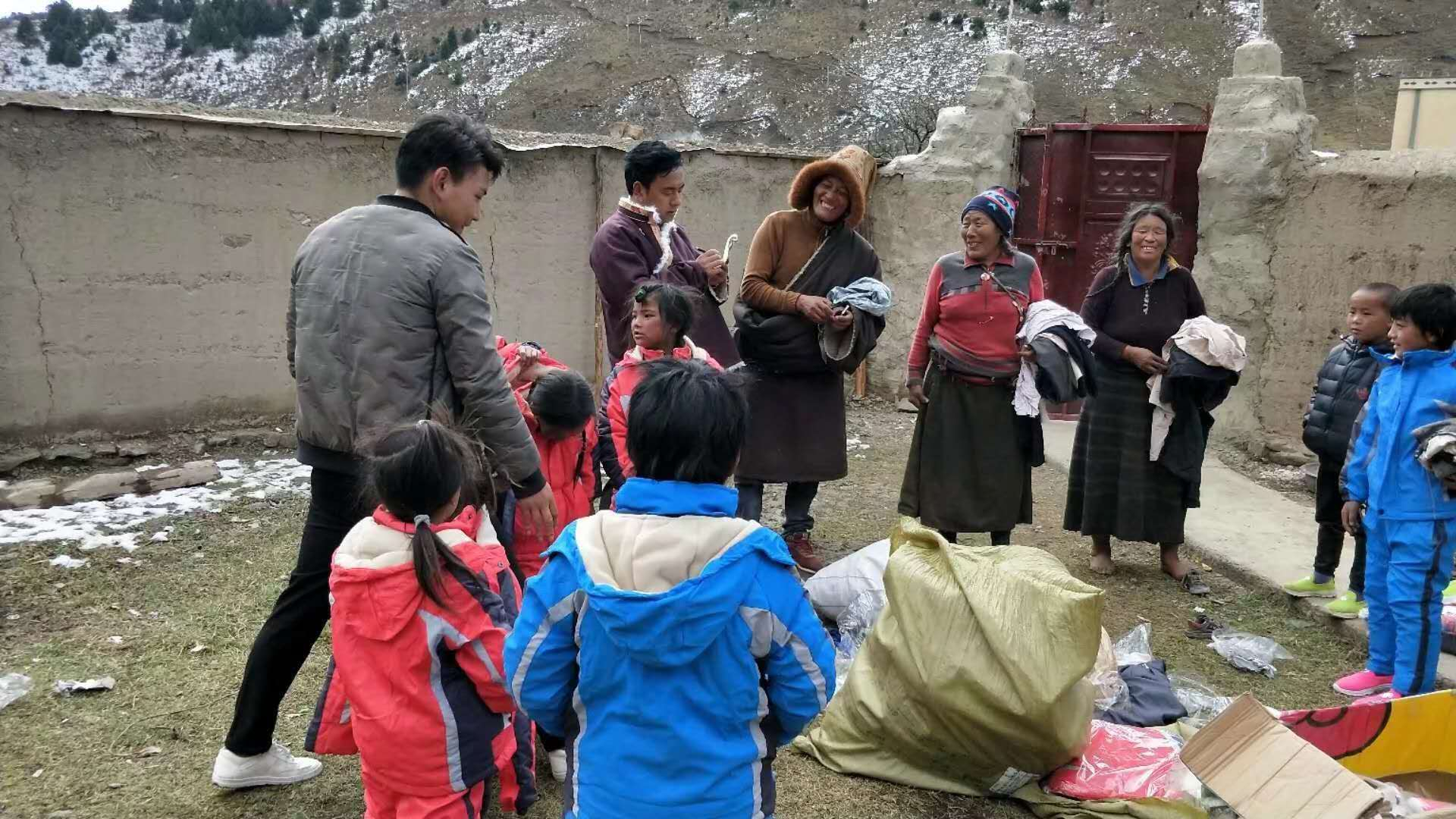 People in southwestern China receive clothes donated to them. /Liaoning Loving Volunteer Association Photo