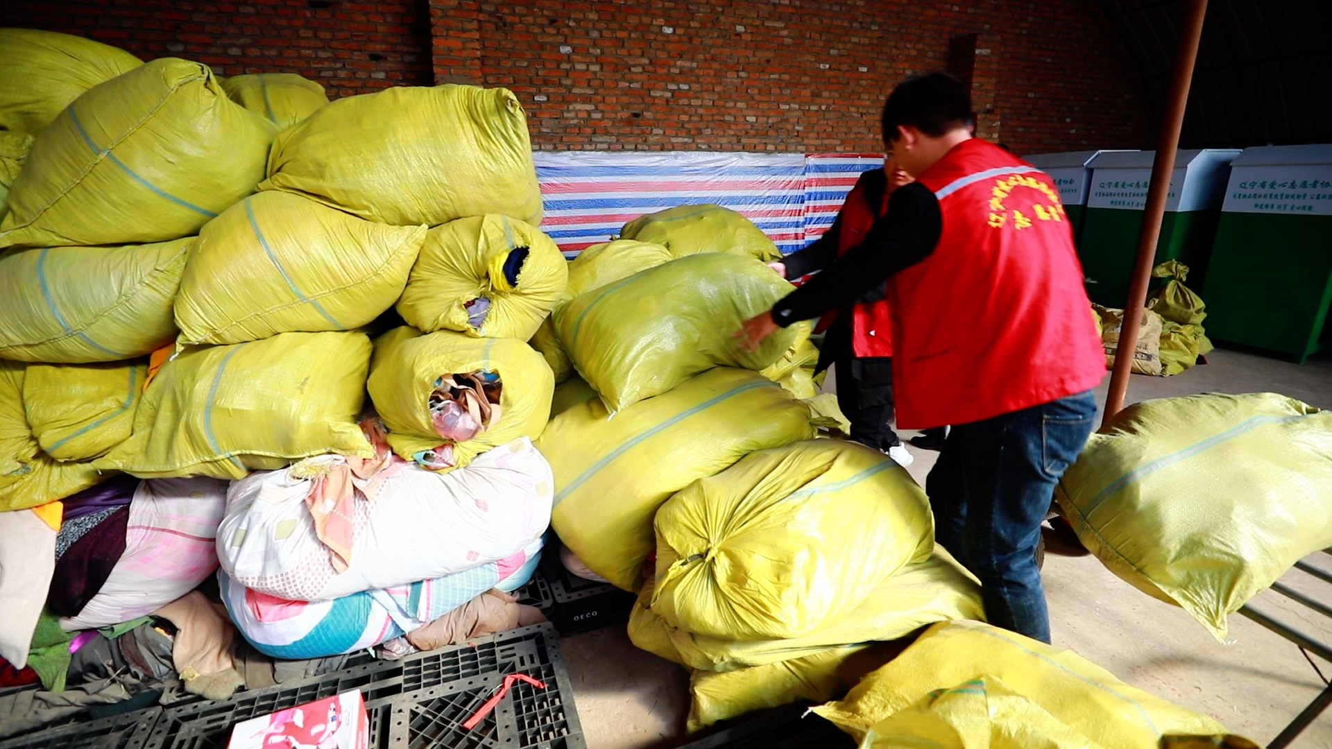Going with a truck that empties the collection boxes in Yuhong community, we find an organization named Liaoning Loving Volunteer Association, where the "red vests" and "green bins" belong. In their warehouse, articles in good condition are sorted out, washed, and packed. According to Zhu Haitao, chairman of the association, usually, over 80 percent of what they collect are good-quality clothes ready to be sent to less developed or disaster-prone areas in southwestern China. "And the rest can be smashed and fiberized to be used for producing stuffing of quilts," said volunteers of the association who haven't got enough money and technology to really carry out the plan.