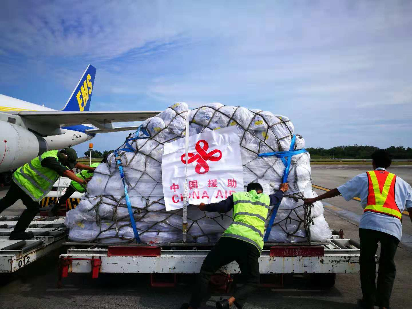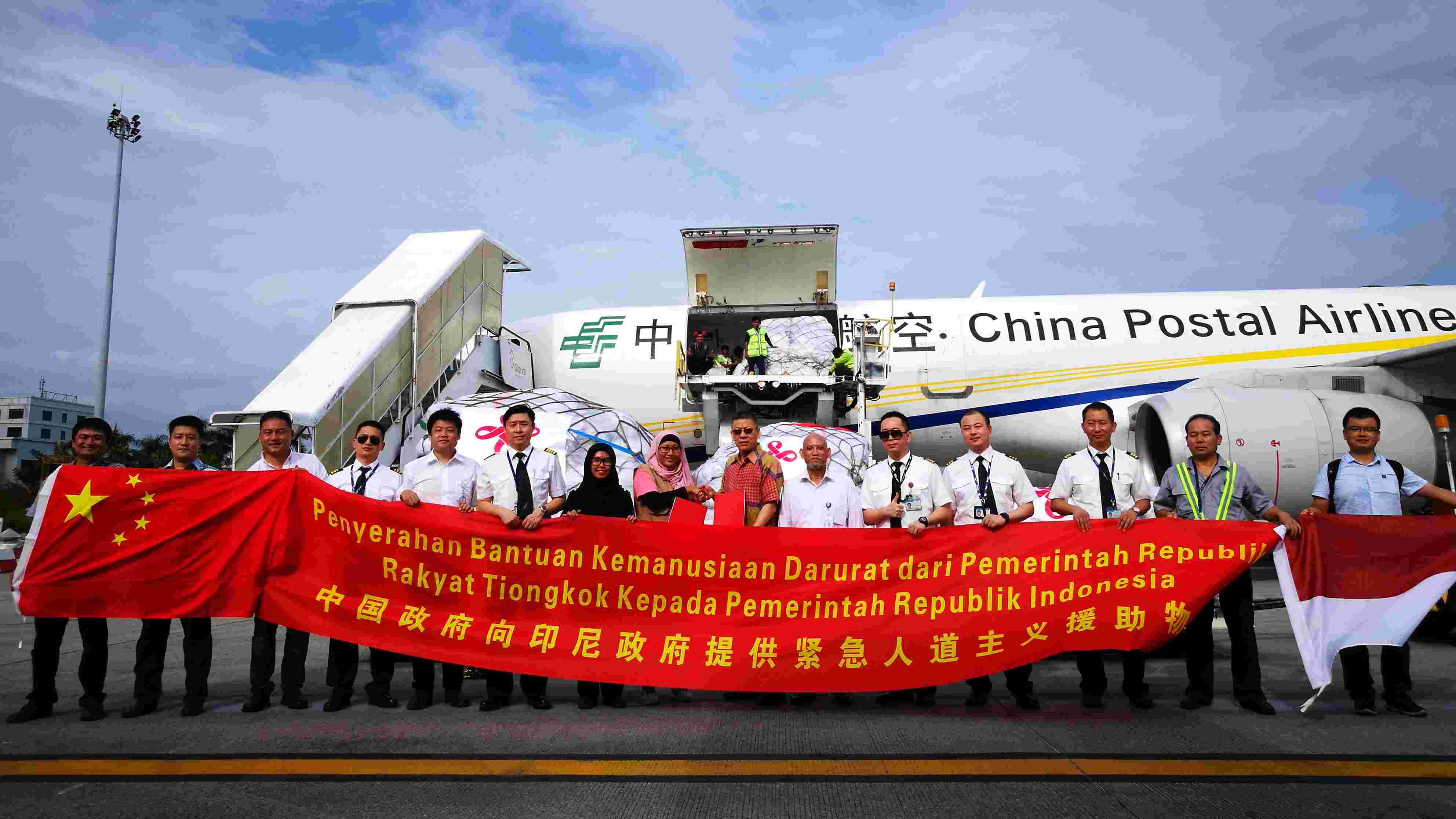 The humanitarian aid supplies from the Chinese government for the Indonesian earthquakes and tsunami victims arrived at the airport in Balikpapan, Indonesia on Tuesday afternoon.