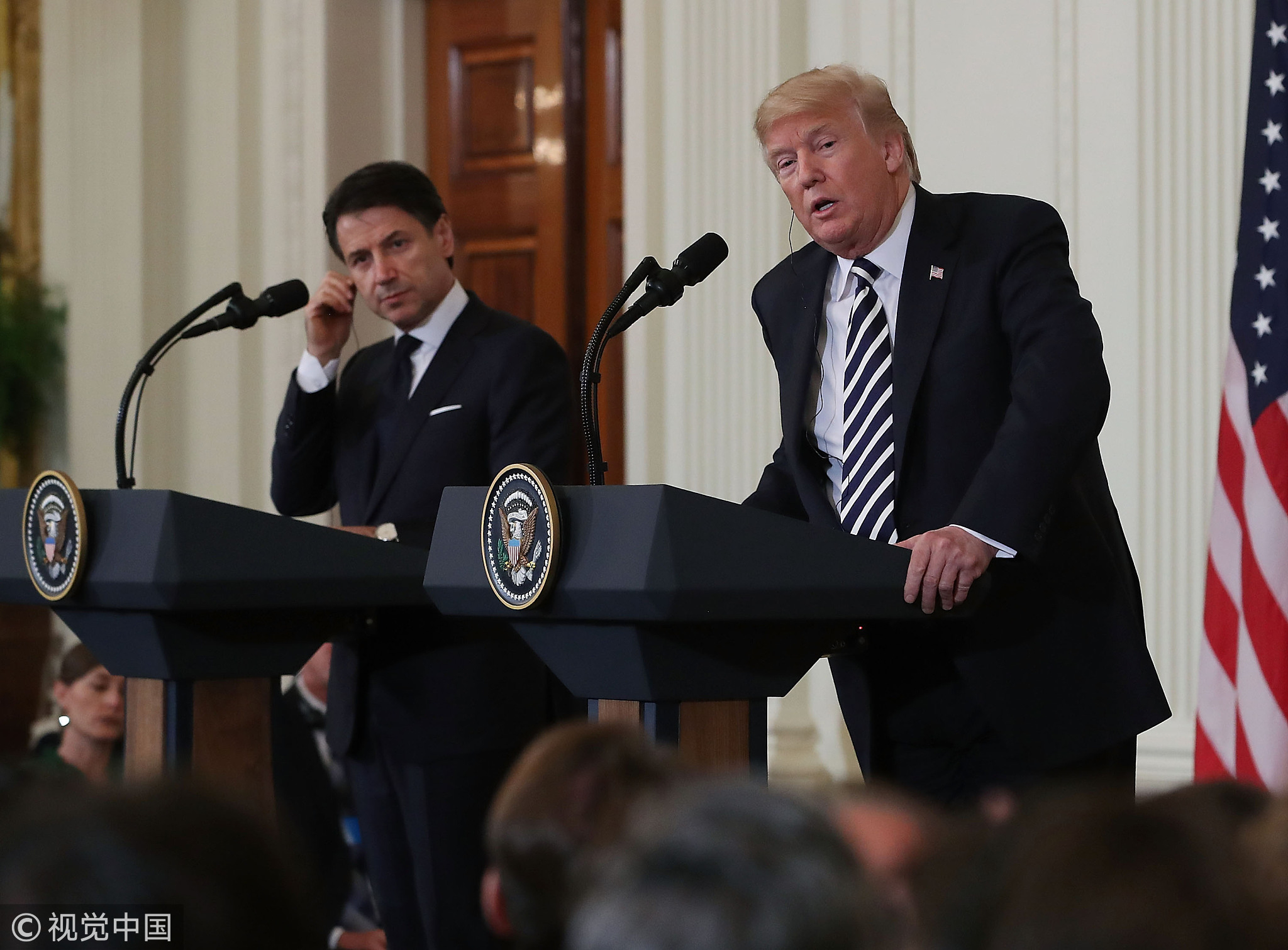 US President Donald Trump (R) and Prime Minister of Italy Giuseppe Conte speak and take questions from the media after meeting in the Oval Office, July 30, 2018, in Washington, DC. /VCG Photo