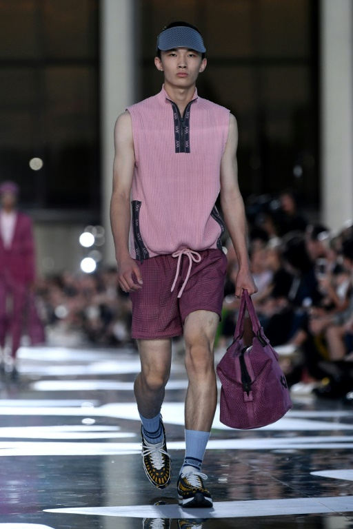 An Ermenegildo Zegna model struts his stuff on the mirrored catwalk. /AFP Photo